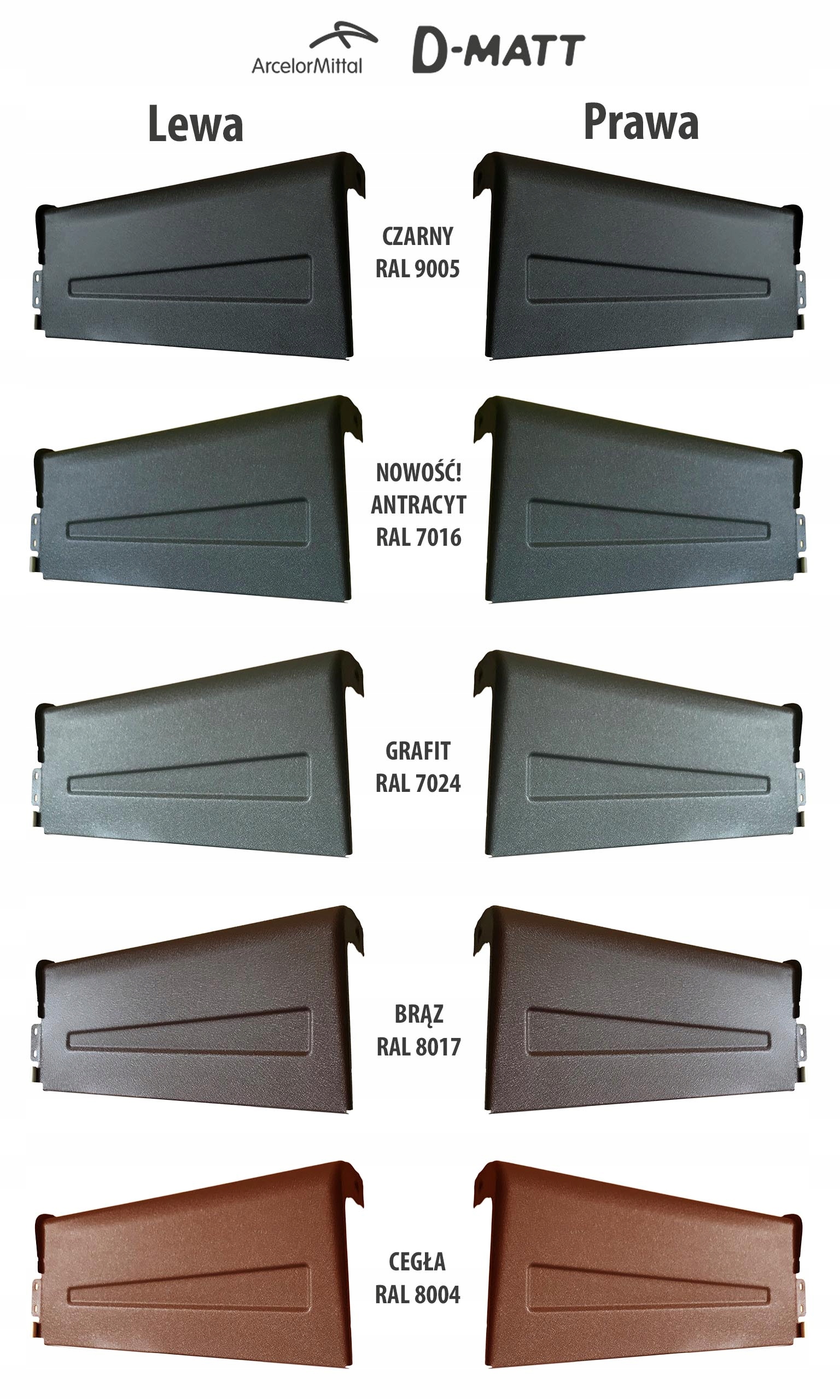 - Kolor: Czarny 9005, RAL 7016, Grafit 7024, Brąz 8017, Cegła 8004.