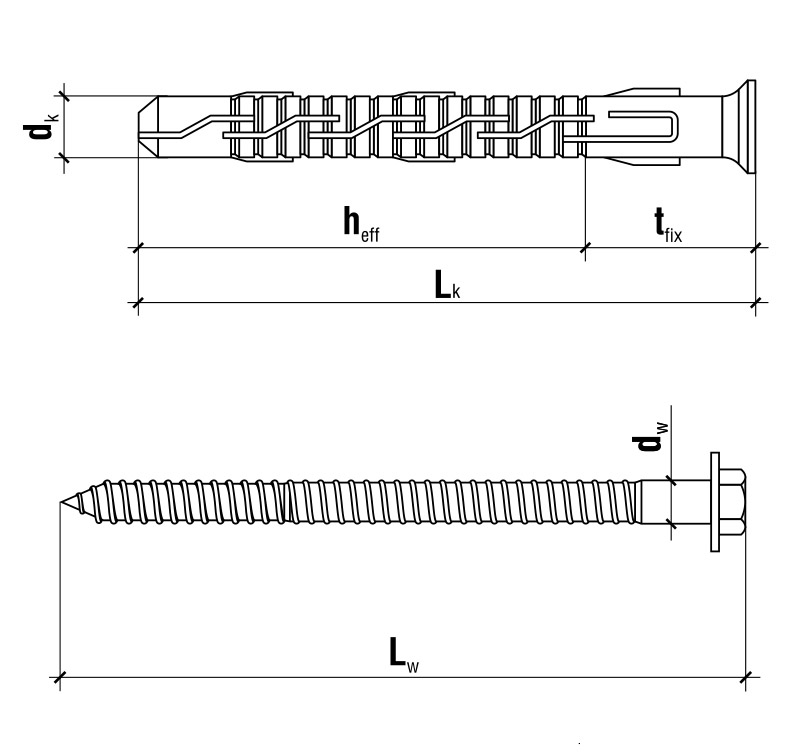 Składa się z koszulki wykonanej z poliamidu oraz wkręta wykonanego ze stali ocynkowanej z łbem sześciokątnym wraz ze zintegrowaną podkładką oraz gniazdem TX.