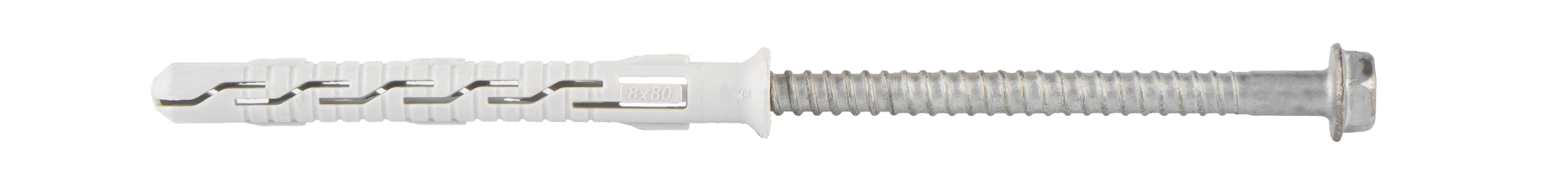 Kołek ramowy z wkrętem z łbem sześciokątnym wraz ze zintegrowaną podkładką oraz gniazdem TX zalecany do mocowania elementów metalowych.
