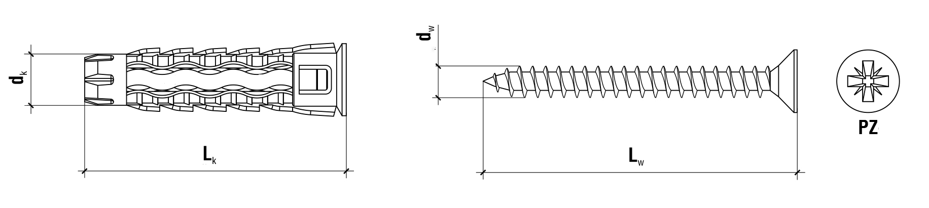 Składa się z koszulki wykonanej z poliamidu oraz wkręta wykonanego ze stali ocynkowanej z łbem stożkowym oraz gniazdem PZ-2.