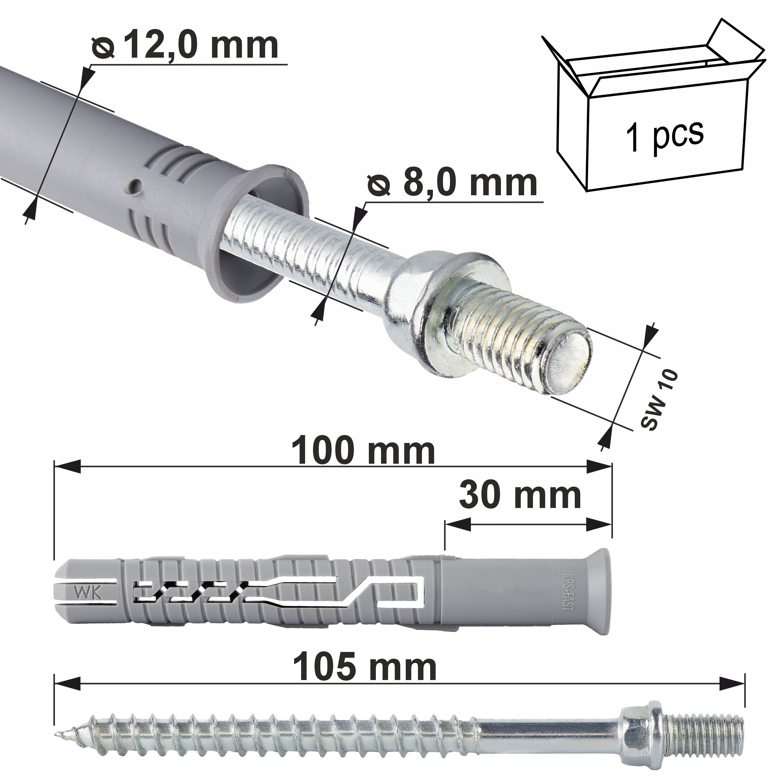 Kołek rozporowy do rur spustowych 12x 100 mm 1szt dwugwintowy M8 Klimas KPD