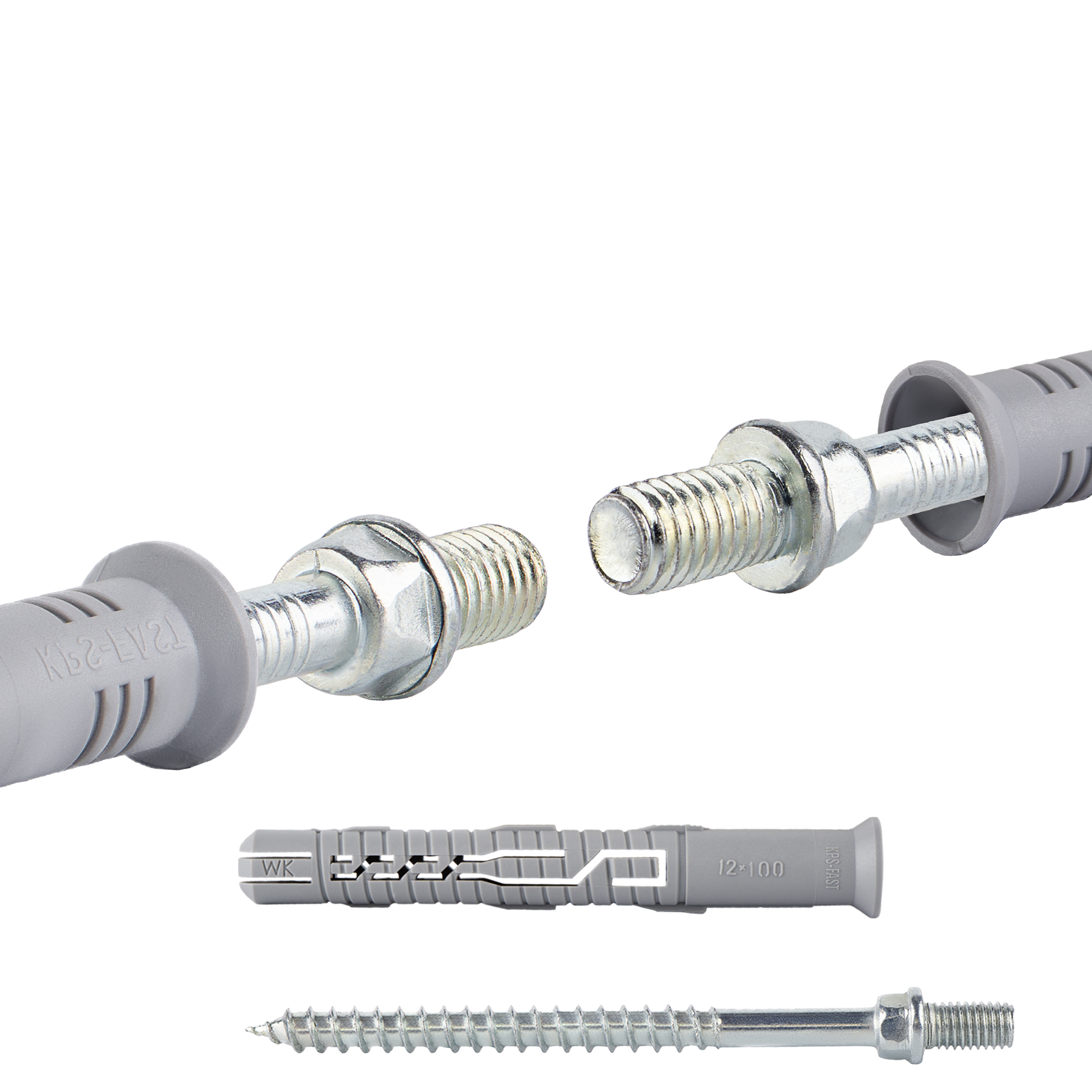 - Składają się z koszulki wykonanej z poliamidu oraz z wkręta wykonanego ze stali ocynkowanej zakończonym gwintem metrycznym M8, który pozwala na montaż obejm rur spustowych, wentylacyjnych czy tras kablowych