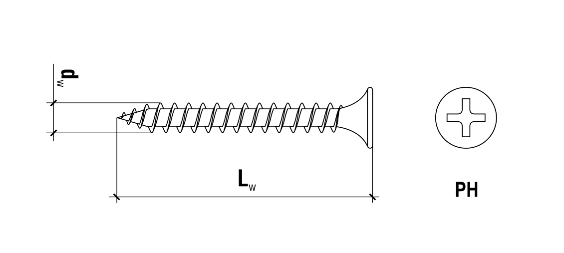 Wkręty do mocowania płyt g-k wykonane są ze stali węglowej pokrytej specjalną powłoką fosfatową. Wkręty posiadają łeb stożkowy płaski, który zapewnia odpowiednie zagłębienie w mocowanym elemencie oraz gwint do stali zakończony ostrą końcówką, co zapewnia trwałe i pewne mocowanie w podłożu drewnianym oraz ułatwia rozpoczęcie montażu. Łeb wkręta posiada wgłębienie typu PH-2, co umożliwia montaż przy użyciu końcówek z ogranicznikiem głębokości kotwienia.