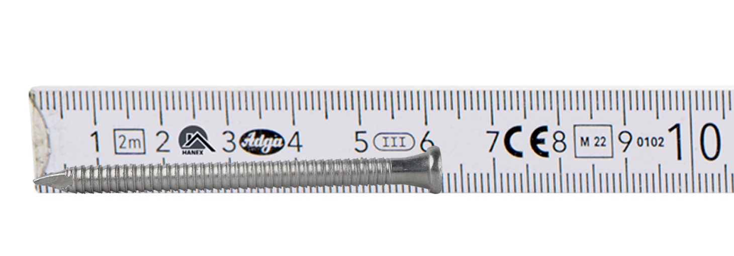 Stożkowe poszerzenie średnicy trzpienia pod główką gwoździa znacząco redukuje początkowe przemieszczenia w momencie pojawienia się obciążenia. To zapewnia większą stabilność połączeń już od pierwszych etapów montażu.