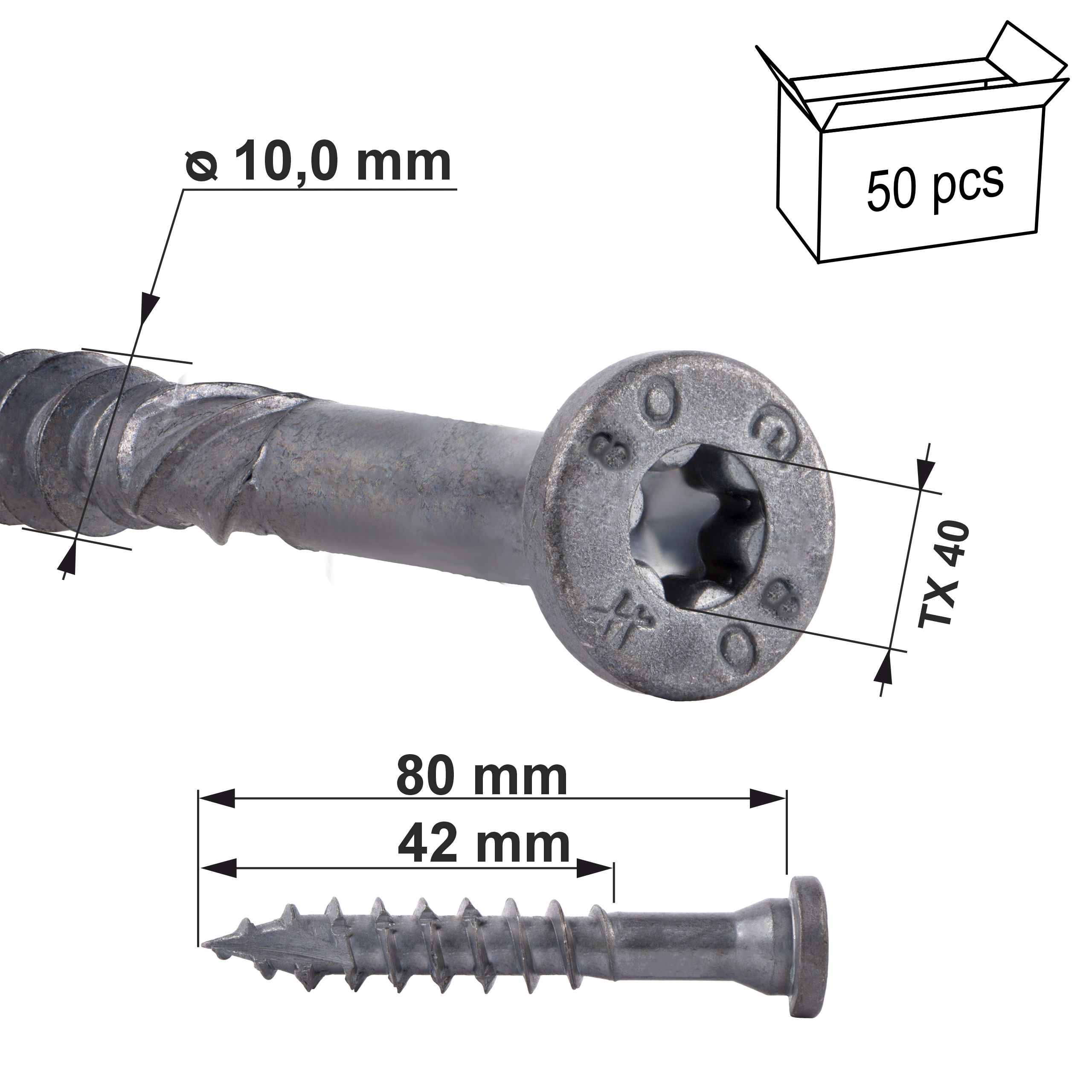 Wkręty do złączy / łączników ciesielskich z łbem okrągłym płaskim i gniazdem TORX