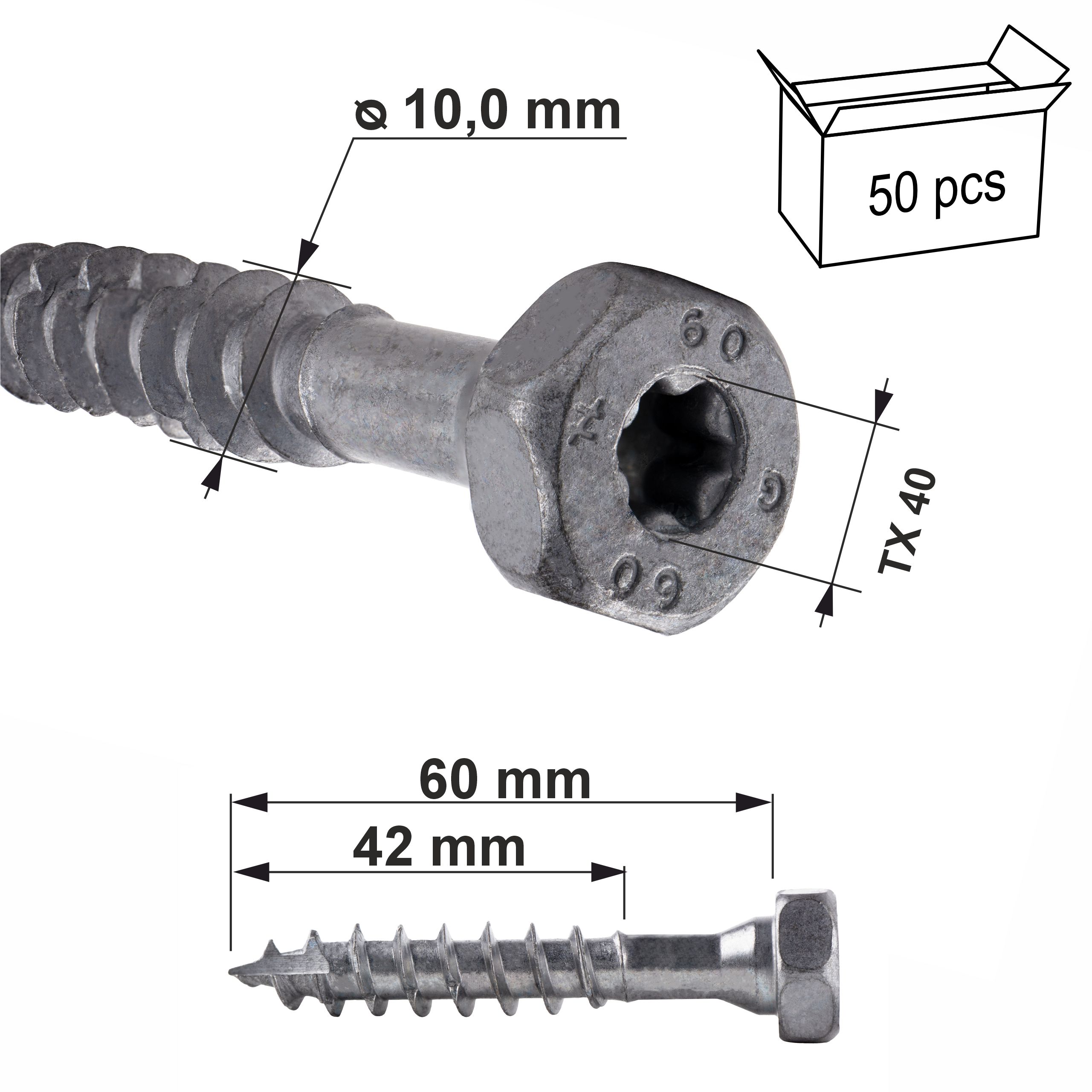 - Wkręty do łączników ciesielskich z łbem sześciokątnym i gniazdem TORX