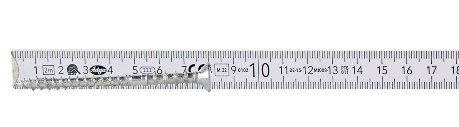 Wkręty mają dwie odmienne strefy profilowania trzpienia. Pierwszy z nich to klasyczny ostry gwint do drewna z ostrym szpicem, drugi to specjalne pierścienie, które przytrzymują mocowany element, dzięki czemu możemy regulować różnice w odległościach pomiędzy elementami.