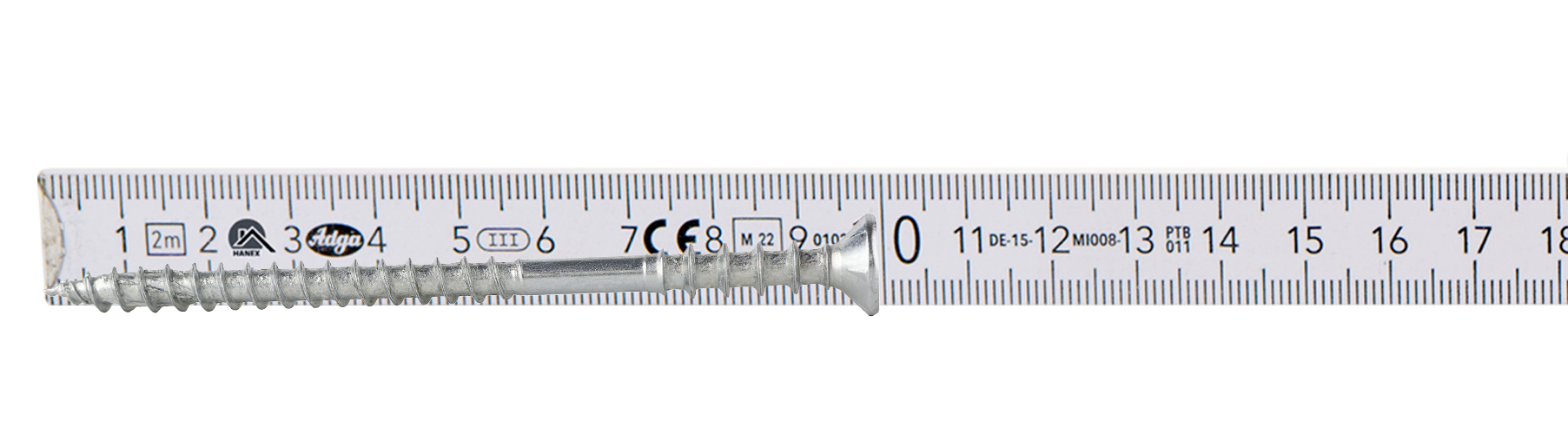 Wkręty mają dwie odmienne strefy profilowania trzpienia. Pierwszy z nich to klasyczny ostry gwint do drewna z ostrym szpicem, drugi to specjalne pierścienie, które przytrzymują mocowany element, dzięki czemu możemy regulować różnice w odległościach pomiędzy elementami.