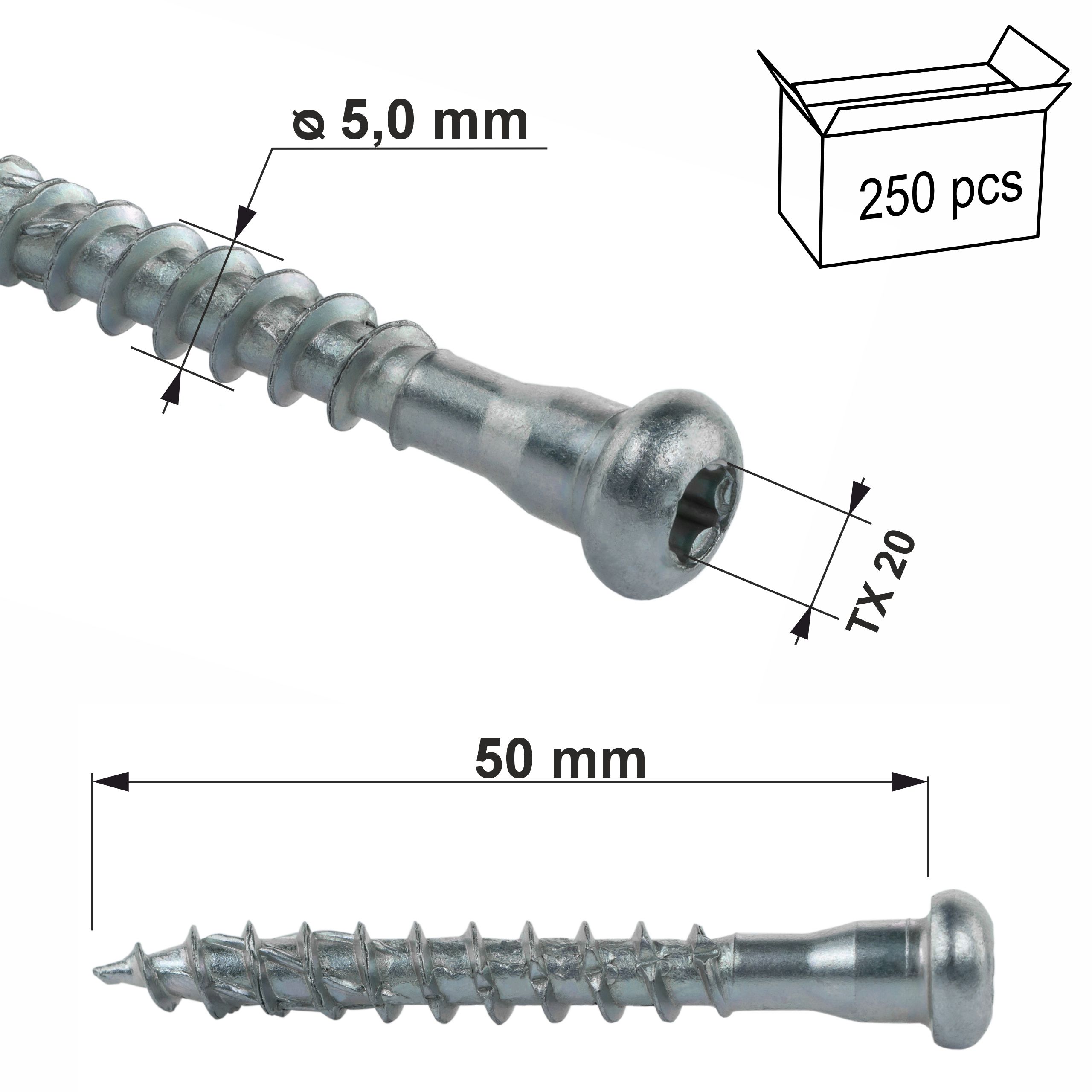 Wkręty do łączników ciesielskich 5x50 mm 250 szt. TORX Klimas WKLC
