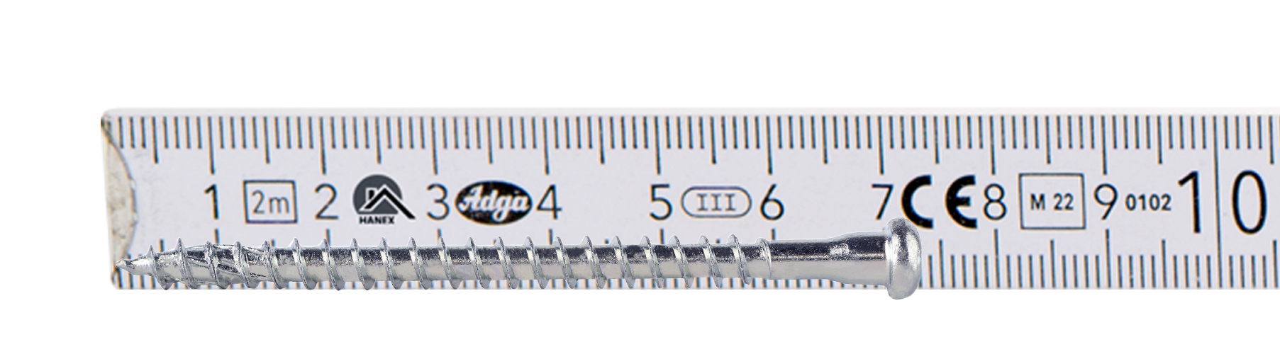 Poszerzona średnica wkręta pod łbem zwiększa wytrzymałość wkręta na ścinanie oraz zapewnie idealne dopasowanie do otworów znajdujących się w złączach ciesielskich. Początkowo sfazowana część pod łbem zapewnia bezproblemowe osadzenie wkręta w otworze.