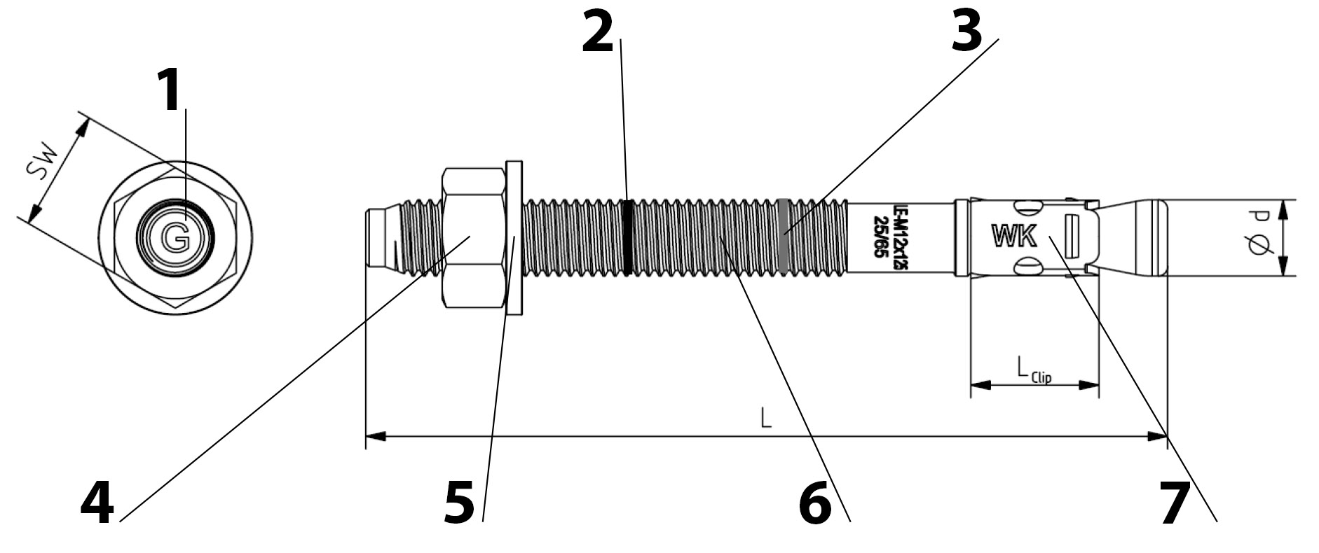 Kotwa mechaniczna LE-ZN składa się z nagwintowanego trzpienia zakończonego stożkiem rozpierającym, opaski rozporowej oraz nakrętki sześciokątnej i podkładki. Wykonana jest ze stali niskowęglowej i pokryta warstwą ocynku, co zapewnia ochronę antykorozyjną. Zamocowanie następuje poprzez dokręcenie nakrętki odpowiednim momentem, co powoduje przesunięcie opaski rozporowej i powstanie trwałego zakotwienia w podłożu.