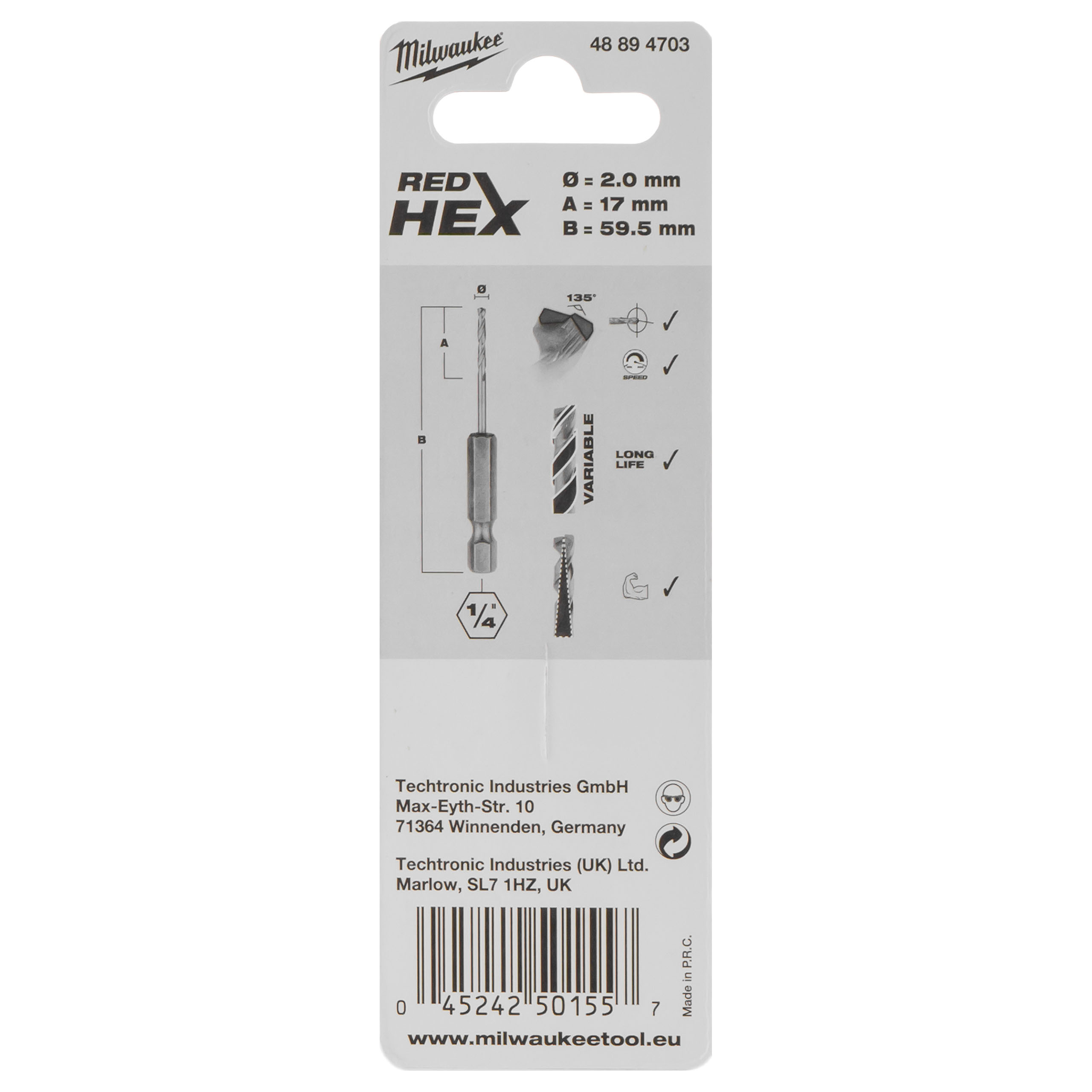 Wiertła do metalu tytanowe HEX 2 mm 2 szt. Milwaukee HSS-G Tin