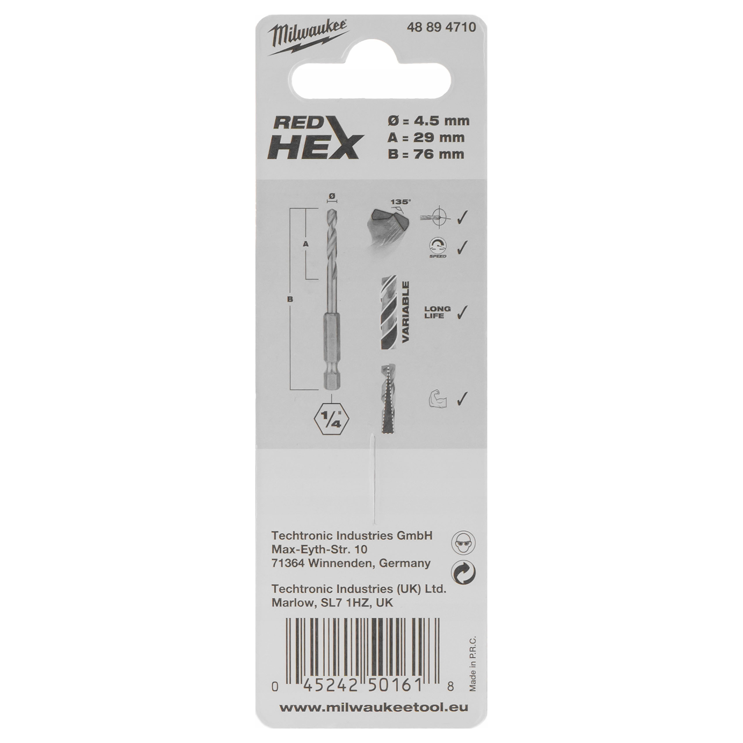 Wiertło do metalu tytanowe HEX 4,5 mm 1 szt. Milwaukee HSS-G Tin
