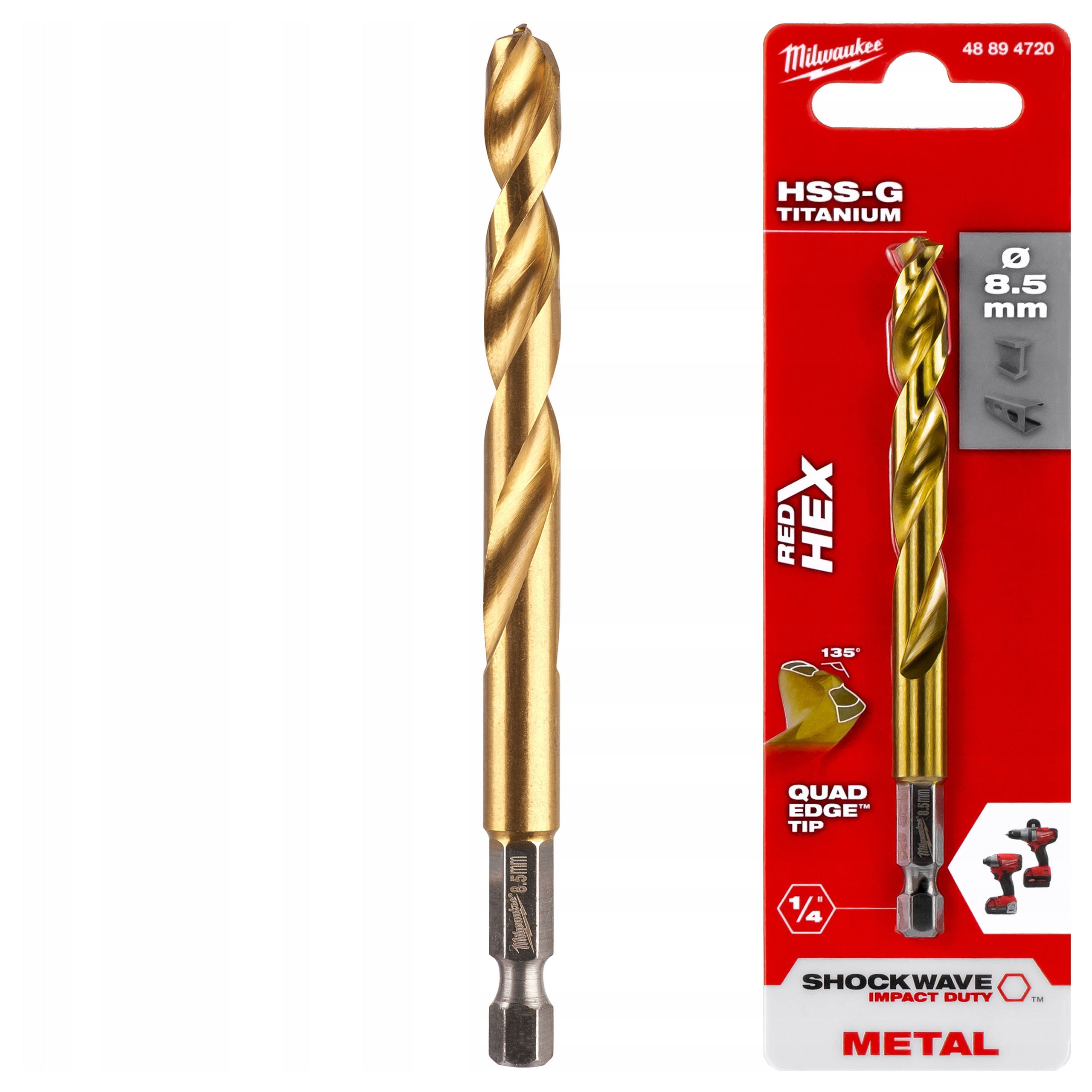 Wiertło do metalu tytanowe HEX 8,5 mm 1 szt. Milwaukee HSS-G Tin