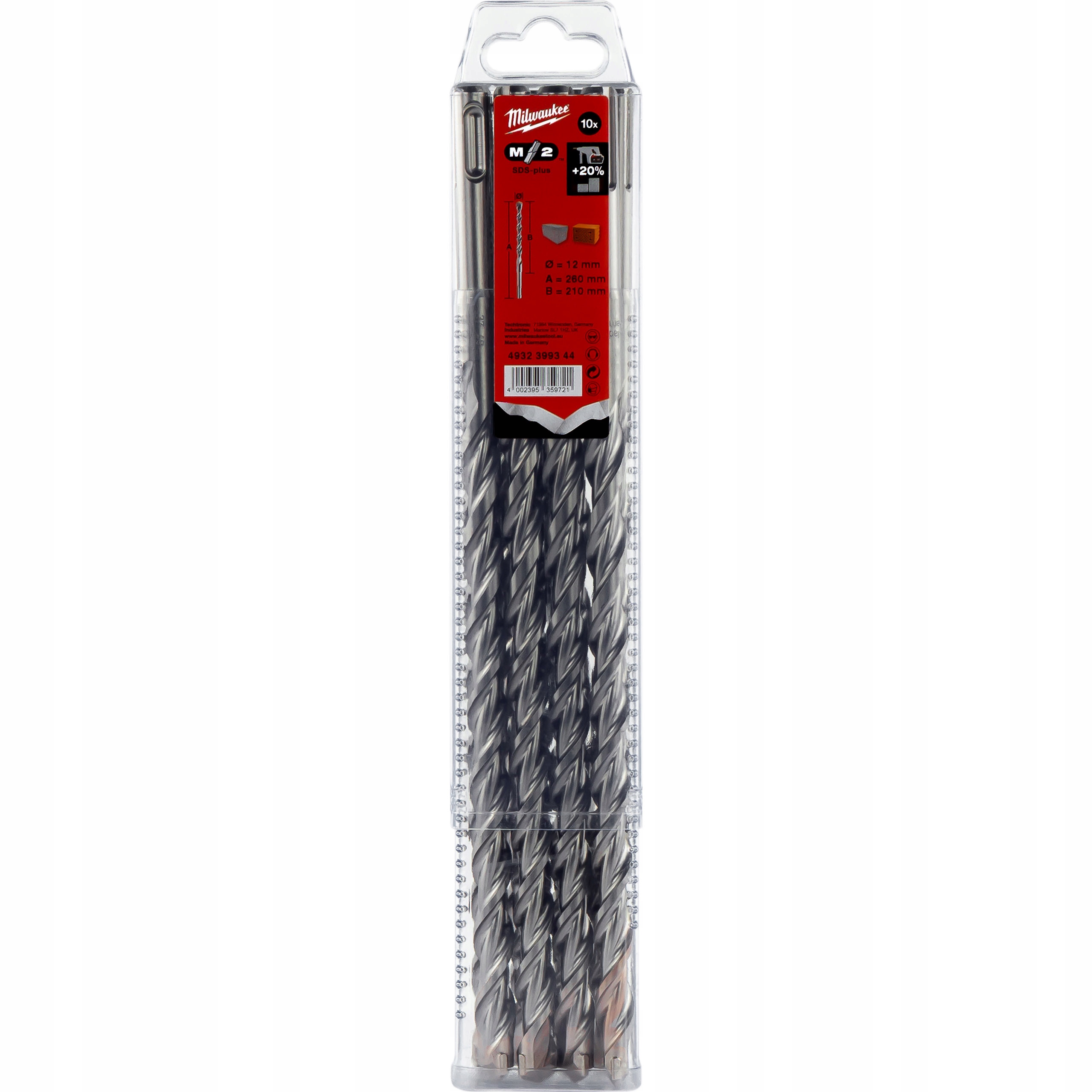 Wiertła do betonu SDS PLUS 12 x 210/260 mm 10 szt. Milwaukee M2