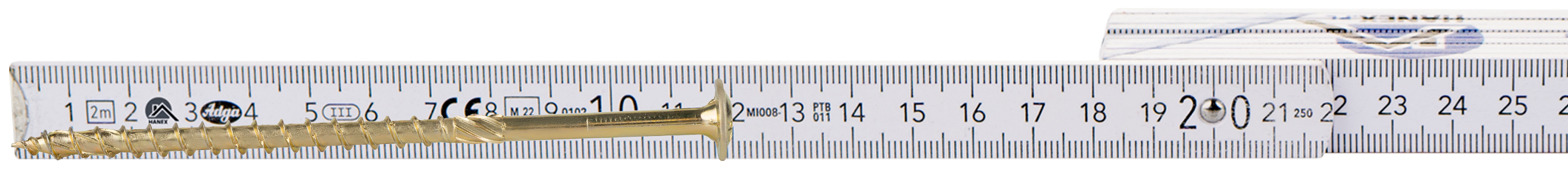 - Wkręty konstrukcyjne wykonane ze stali ocynkowanej posiadają łeb podkładkowy z gniazdem typu TORX oraz specjalną końcówkę wiercącą przeznaczoną do połączeń w konstrukcjach drewni