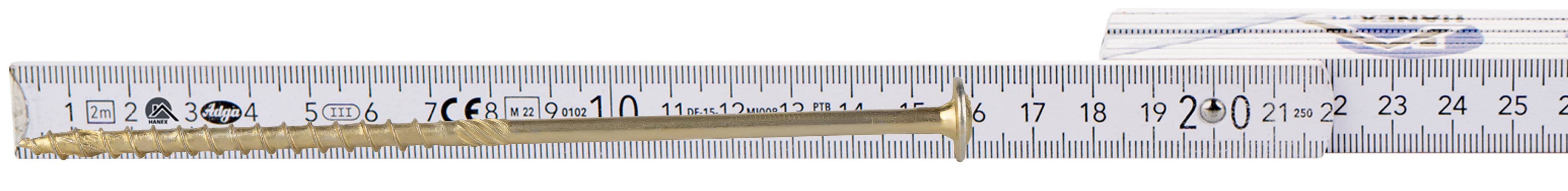 - Wkręty zostały wykonane zgodnie z normą PN-EN 1995:2014. W niniejszej Normie Europejskiej podano wymagania i metody badań dotyczące materiałów, geometrii, wytrzymałości, sztywności i trwałości (tj. ochrony przed korozją) łączników stosowanych w nośnych konstrukcjach drewnianych