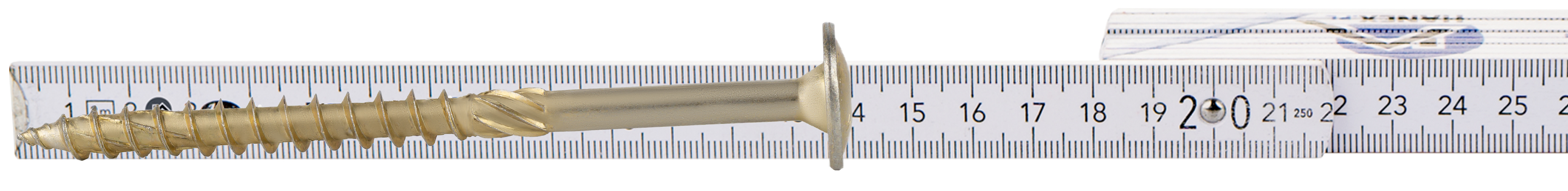 - Wkręty konstrukcyjne wykonane ze stali ocynkowanej posiadają łeb podkładkowy z gniazdem typu TORX oraz specjalną końcówkę wiercącą przeznaczoną do połączeń w konstrukcjach drewni