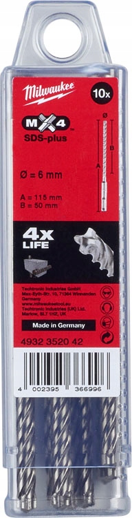 Opinie o Wiertła do betonu zbrojonego SDS PLUS 6 x 50/115 mm 10 szt. Milwaukee MX4