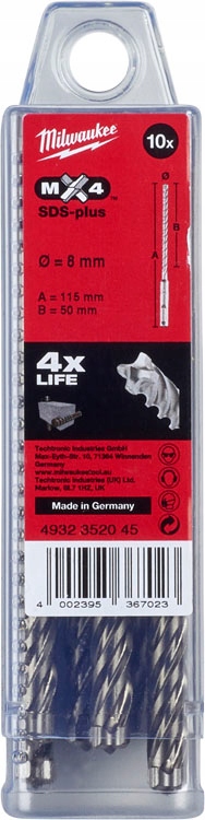 Opinie o Wiertła do betonu zbrojonego SDS PLUS 8 x 50/115 mm 10 szt. Milwaukee MX4