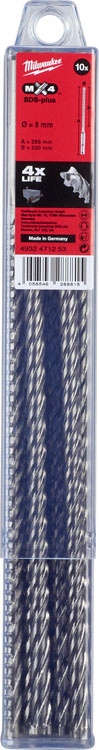 Opinie o Wiertła do betonu zbrojonego SDS PLUS 8 x 200/265 mm 10 szt. Milwaukee MX4