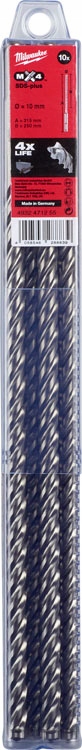 Wiertła do betonu zbrojonego SDS PLUS 10 x 250/315 mm 10 szt. Milwaukee MX4
