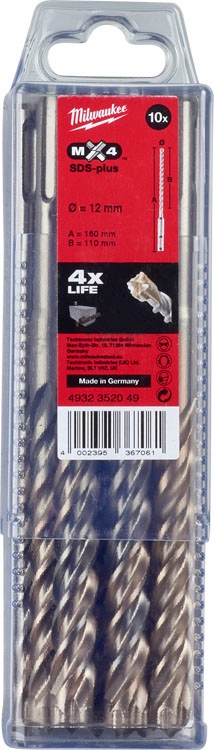 Opinie o Wiertła do betonu zbrojonego SDS PLUS 12 x 110/160 mm 10 szt. Milwaukee MX4