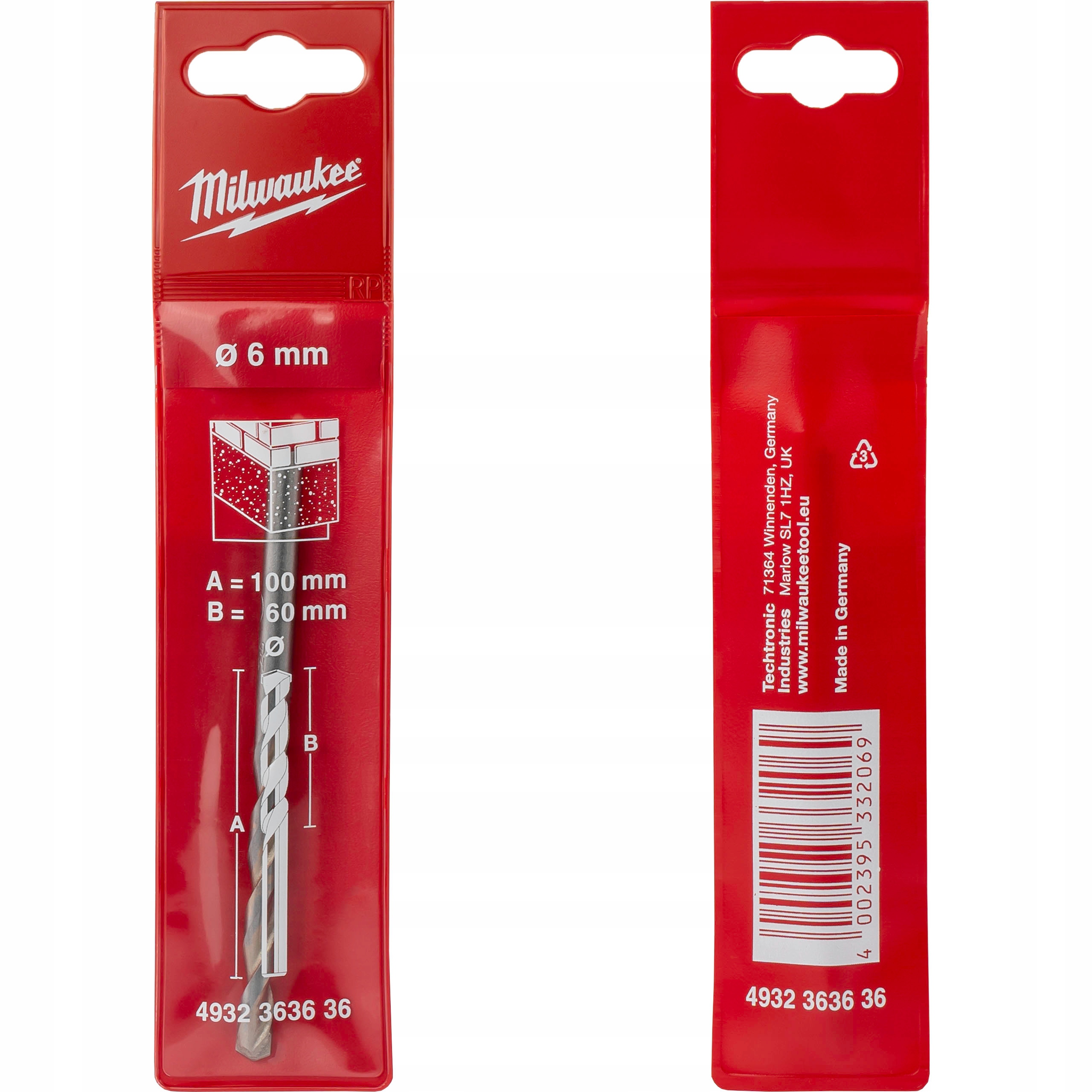 Wiertło do betonu 6 x 60/100 mm udarowe Milwaukee. Ilość w opakowaniu - 1 szt.