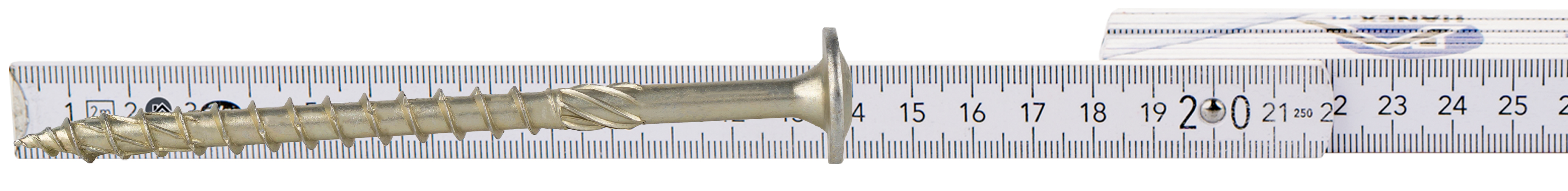 - Wkręty konstrukcyjne wykonane ze stali ocynkowanej posiadają łeb podkładkowy z gniazdem typu TORX oraz specjalną końcówkę wiercącą przeznaczoną do połączeń w konstrukcjach drewni