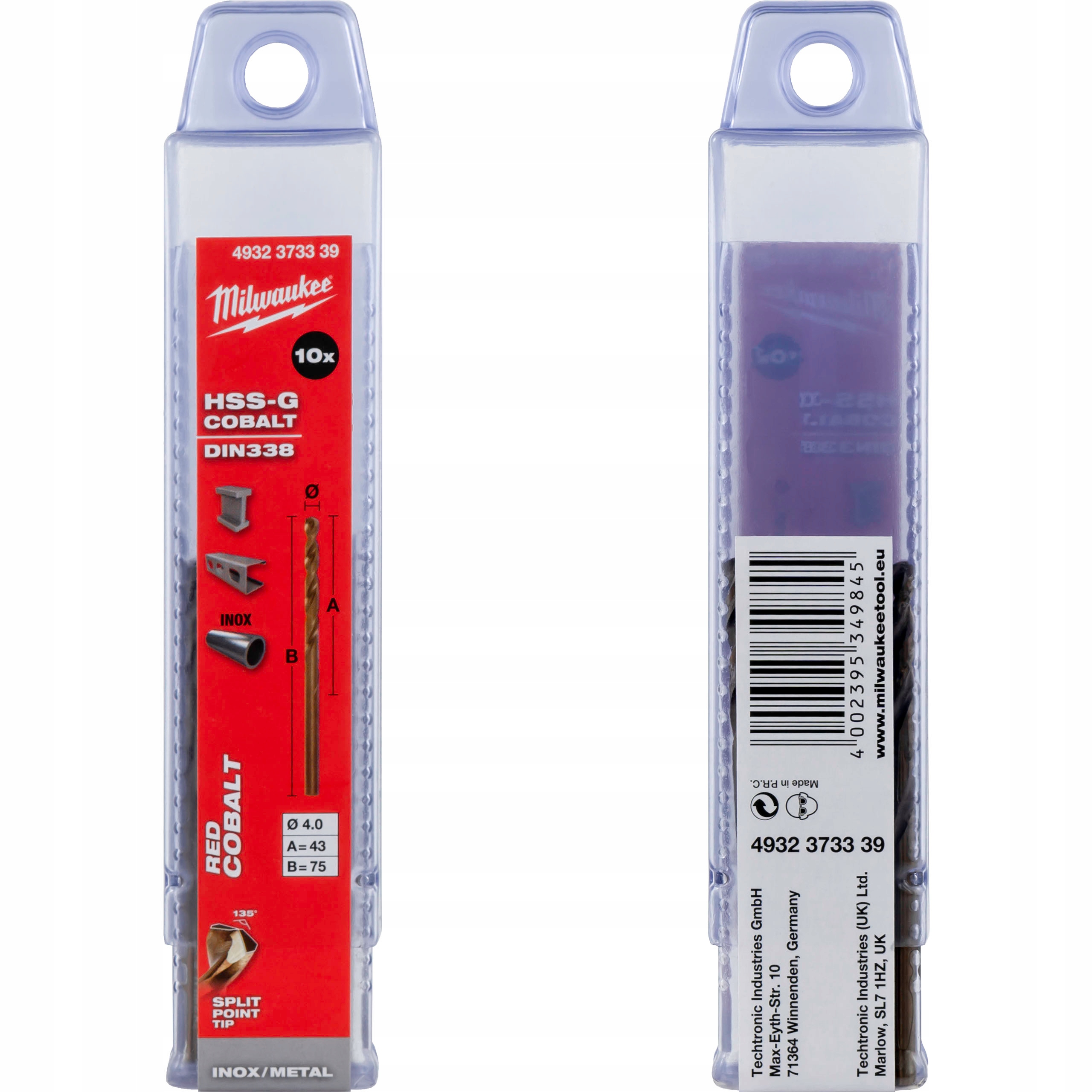 Wiertła do metalu kobaltowe 4 mm 10szt. Stali nierdzewnej Milwaukee Cobalt