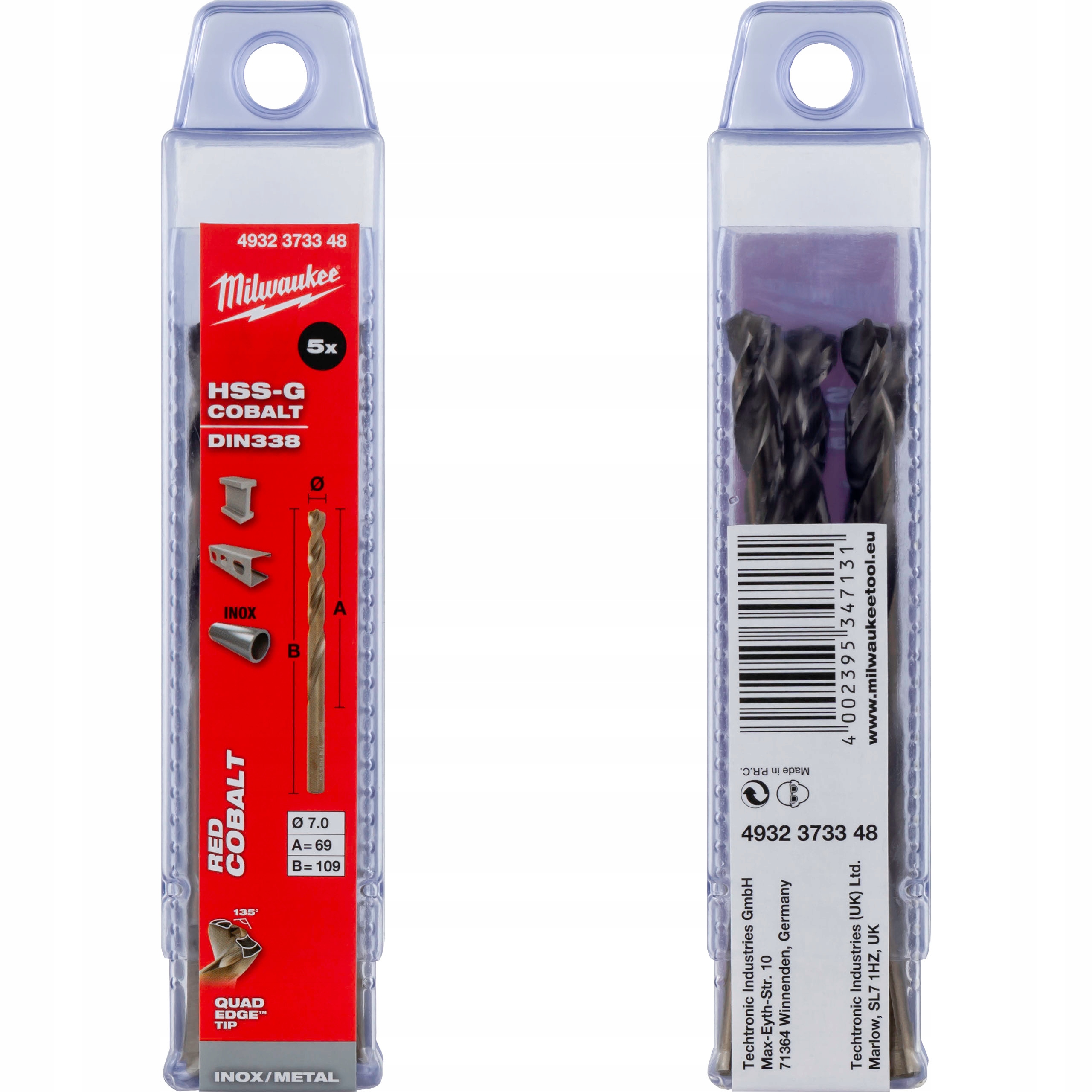 Wiertła do metalu kobaltowe 7 mm 5szt. Stali nierdzewnej Milwaukee Cobalt