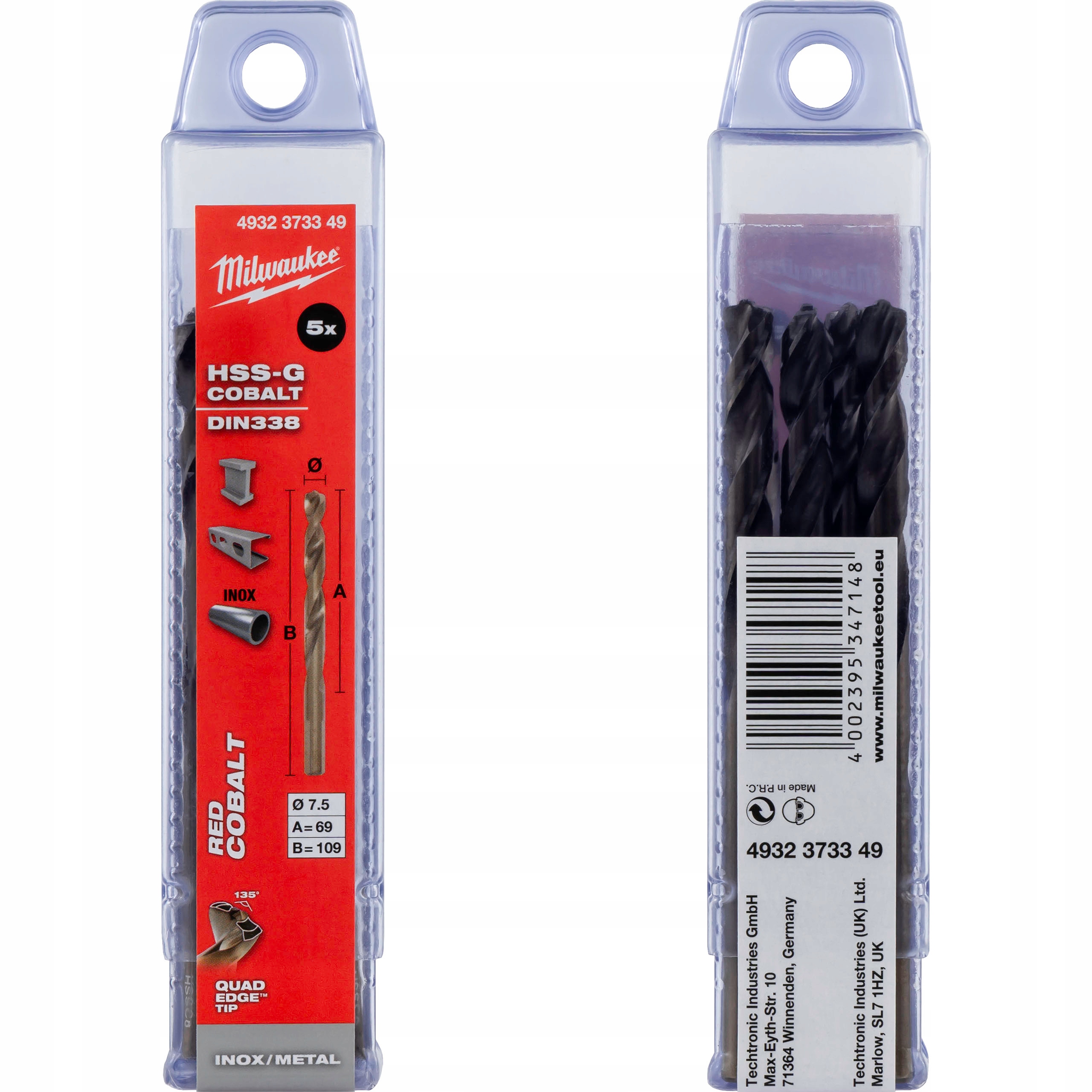 Wiertła do metalu kobaltowe 7,5 mm 5szt. Stali nierdzewnej Milwaukee Cobalt
