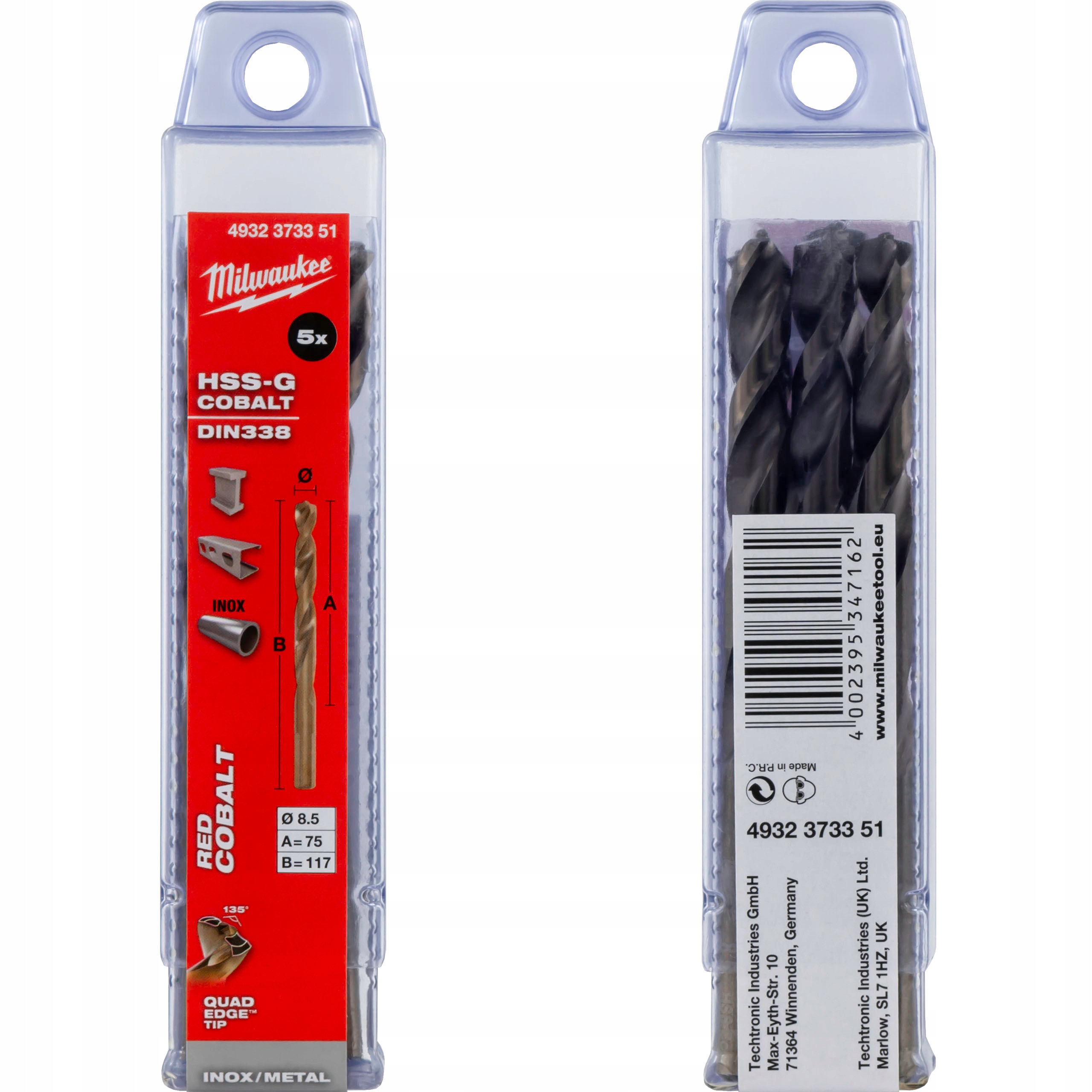 Wiertła do metalu kobaltowe 8,5 mm 5szt. Stali nierdzewnej Milwaukee Cobalt