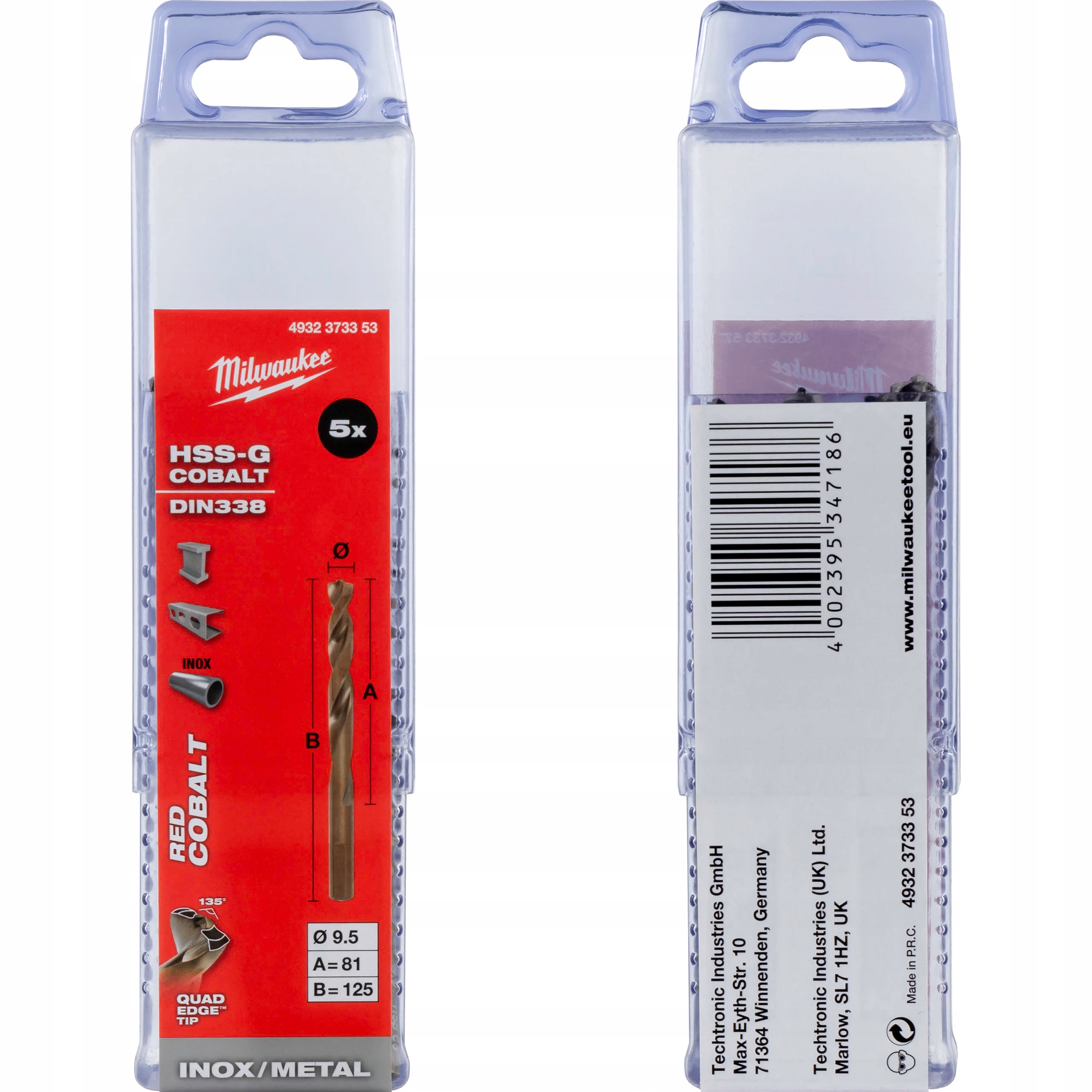 Wiertła do metalu kobaltowe 9,5 mm 5szt. Stali nierdzewnej Milwaukee Cobalt