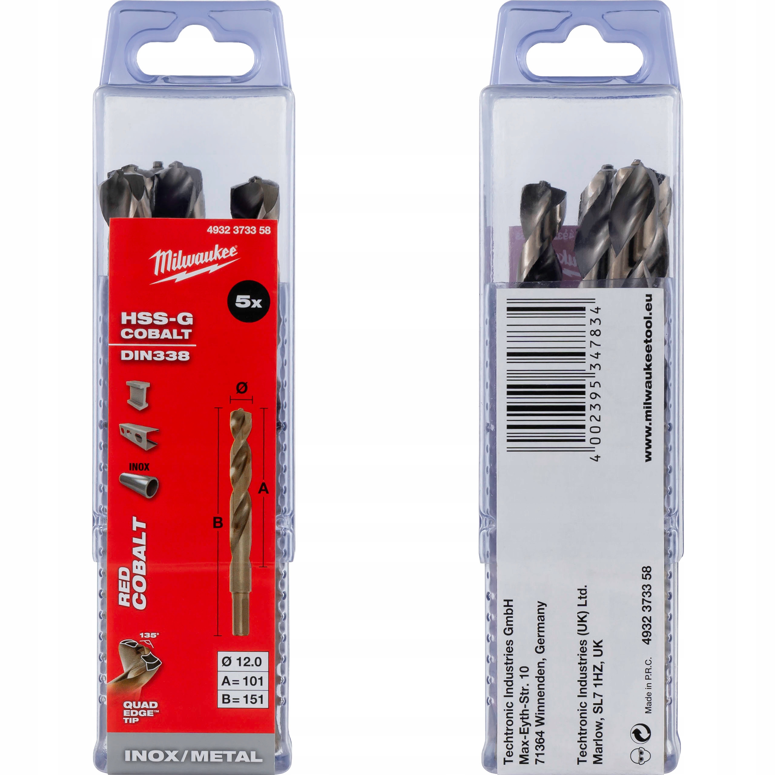 Wiertła do metalu kobaltowe 12 mm 5szt. Stali nierdzewnej Milwaukee Cobalt
