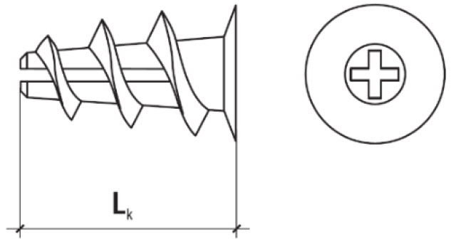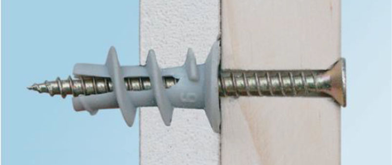 Stosowany jako korpus w połączeniu z elementami łączącymi. Dzięki zastosowaniu szerokiego gwintu, kołek łatwo zagłębia się w podłożu gipsowym, a jednocześnie posiada dużą powierzchnię docisku, co zapobiega miejscowemu uszkodzeniu podłoża.