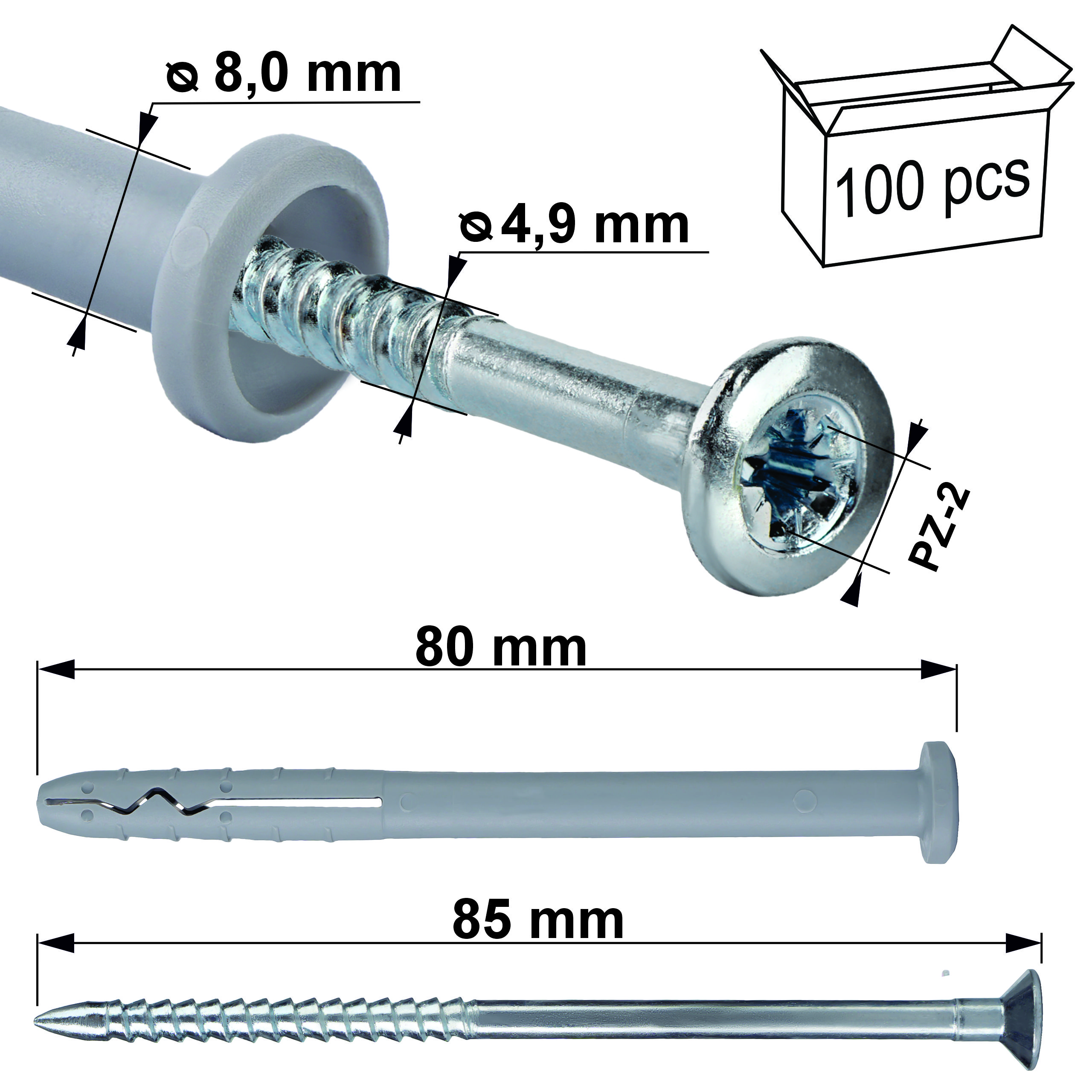 - Rozmiar kołek: 8,0x80 mm