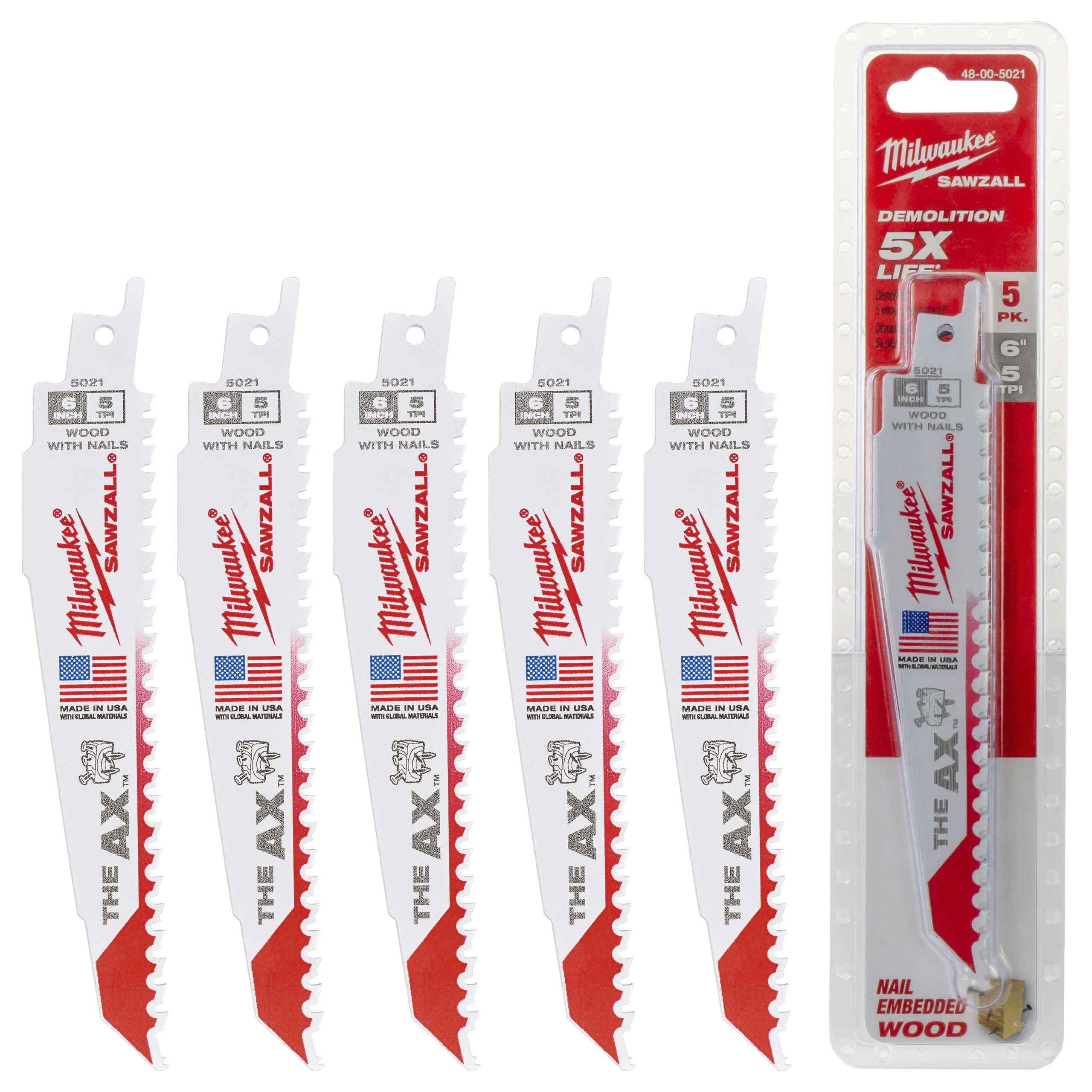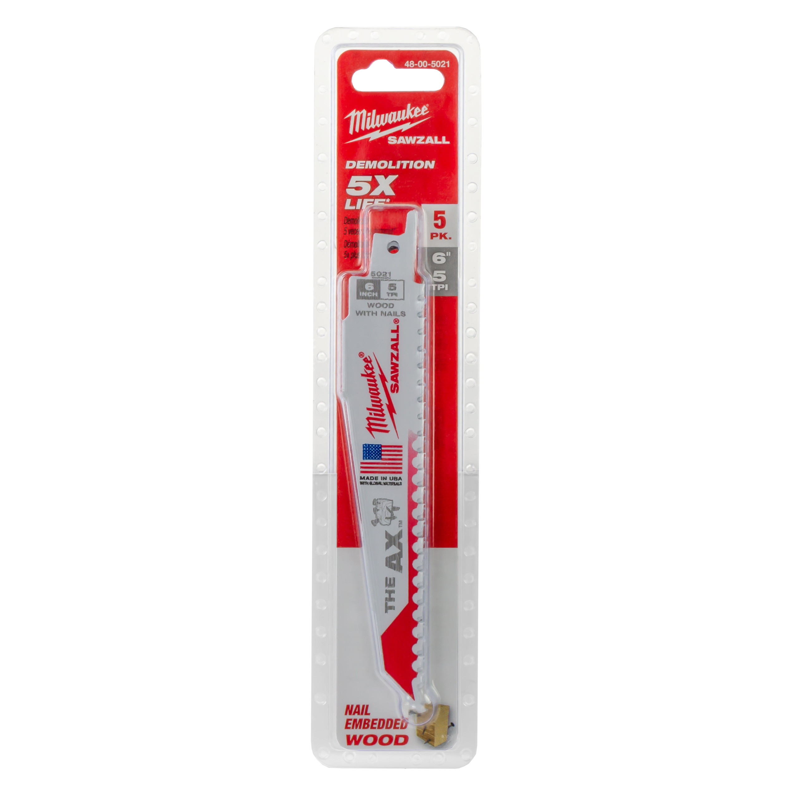 Brzeszczoty do piły szablastej do drewna z gwoździami Milwaukee AX 150 5szt