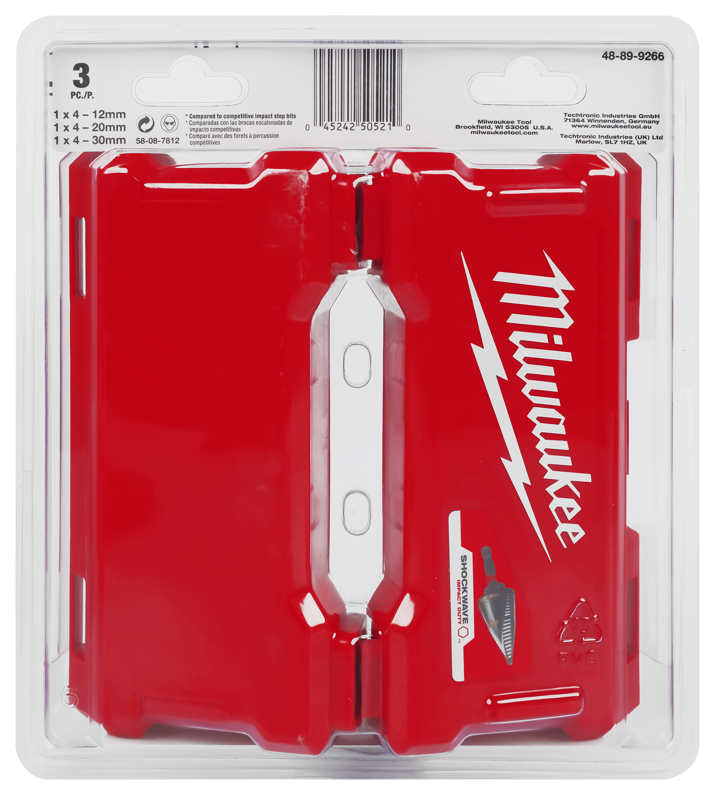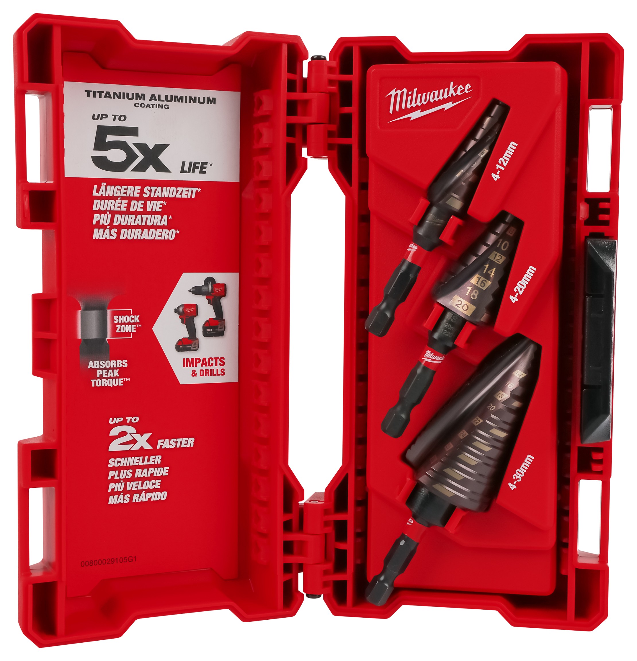 Zestaw wierteł stopniowych Shockwave Milwaukee 4-12 4-20 4-30 mm