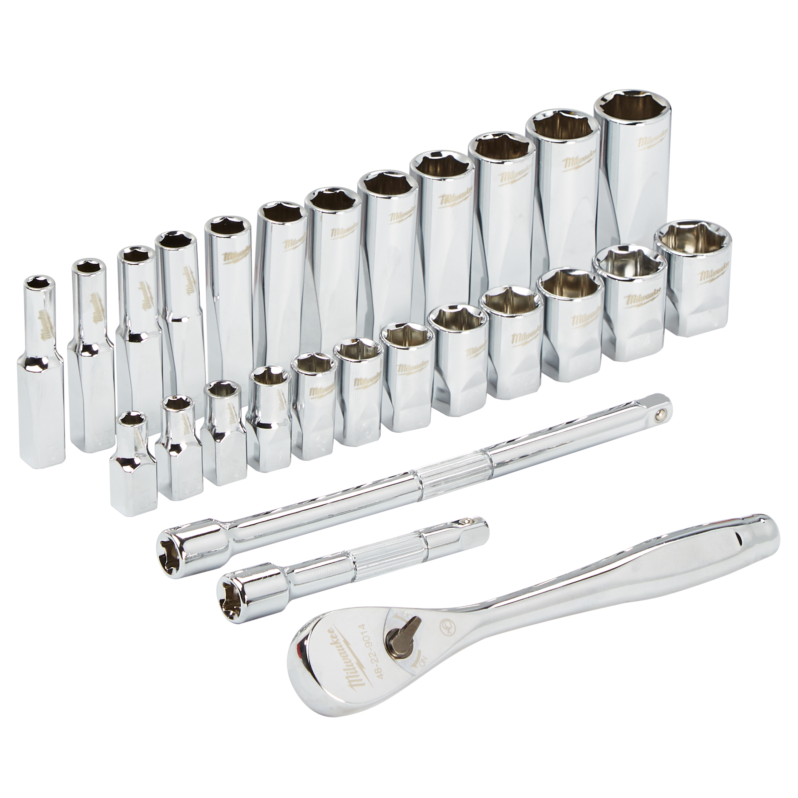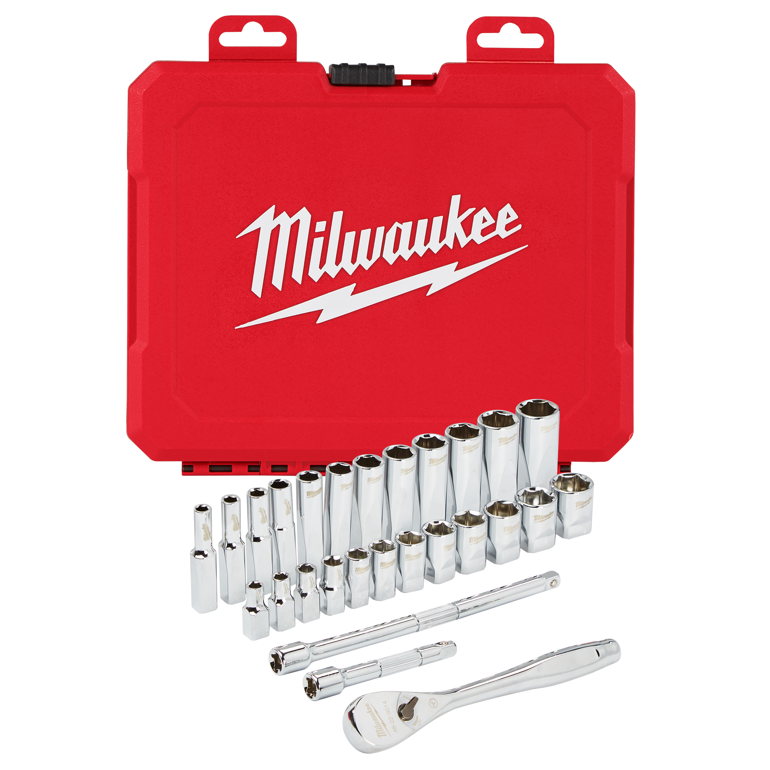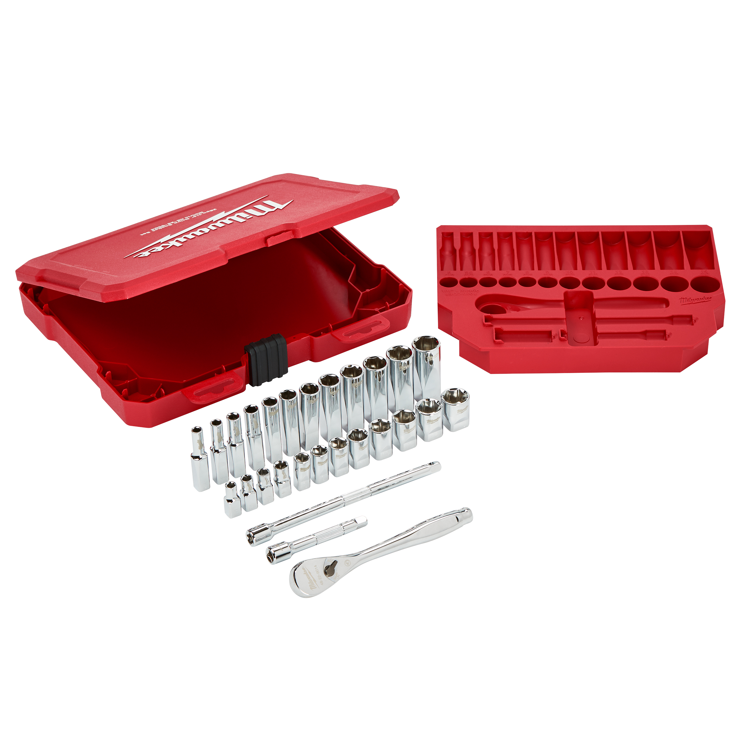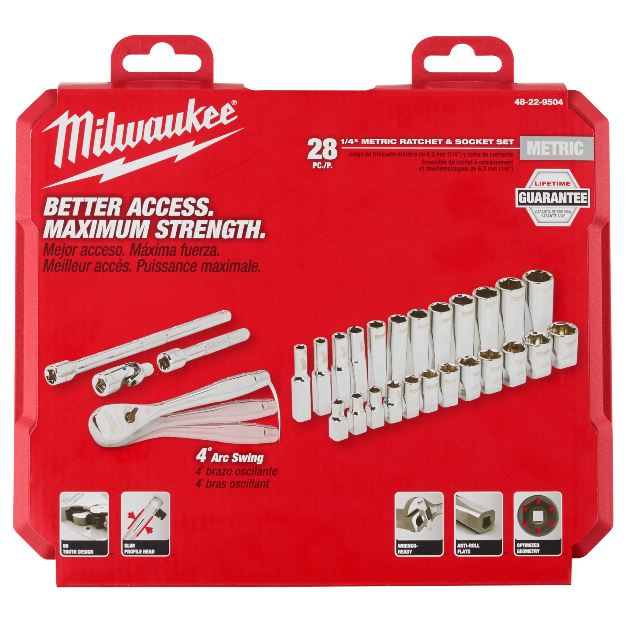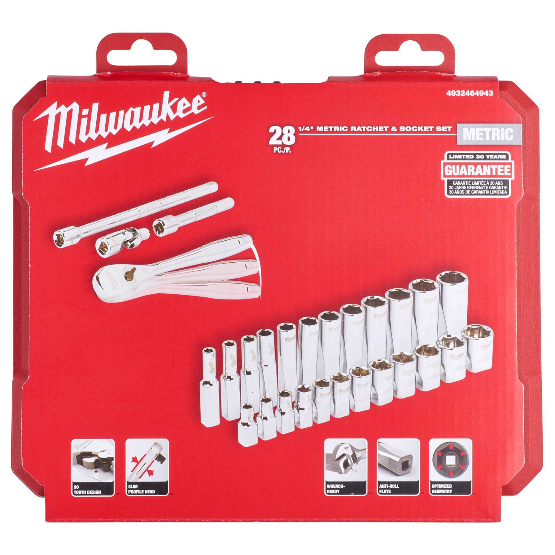 Milwaukee Zestaw Nasadek z Grzechotką 1/4” 5-15mm 28 szt Metalowa Konstrukcja
