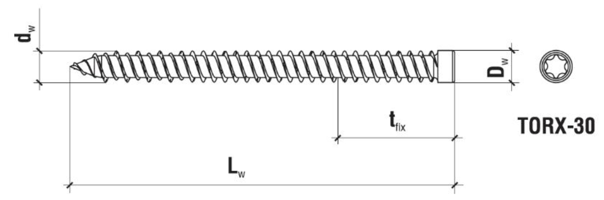 Wkręty wykonane są ze stali węglowej pokrytej warstwą ochronną cynku. Wkręty składają się z części gwintowanej na całej długości oraz łba walcowego.