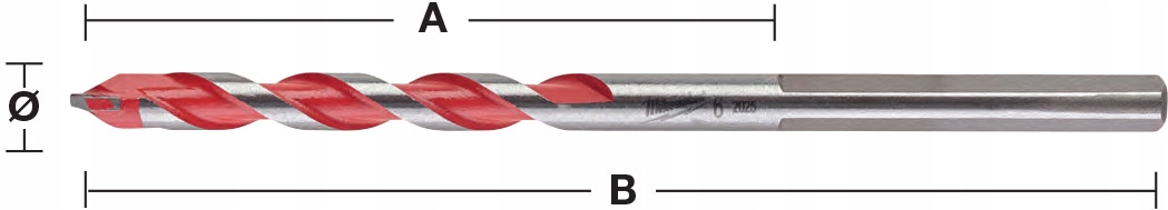 - Czerwone żłobienie ułatwiające wyszukanie wiertła w skrzynce narzędziowej.