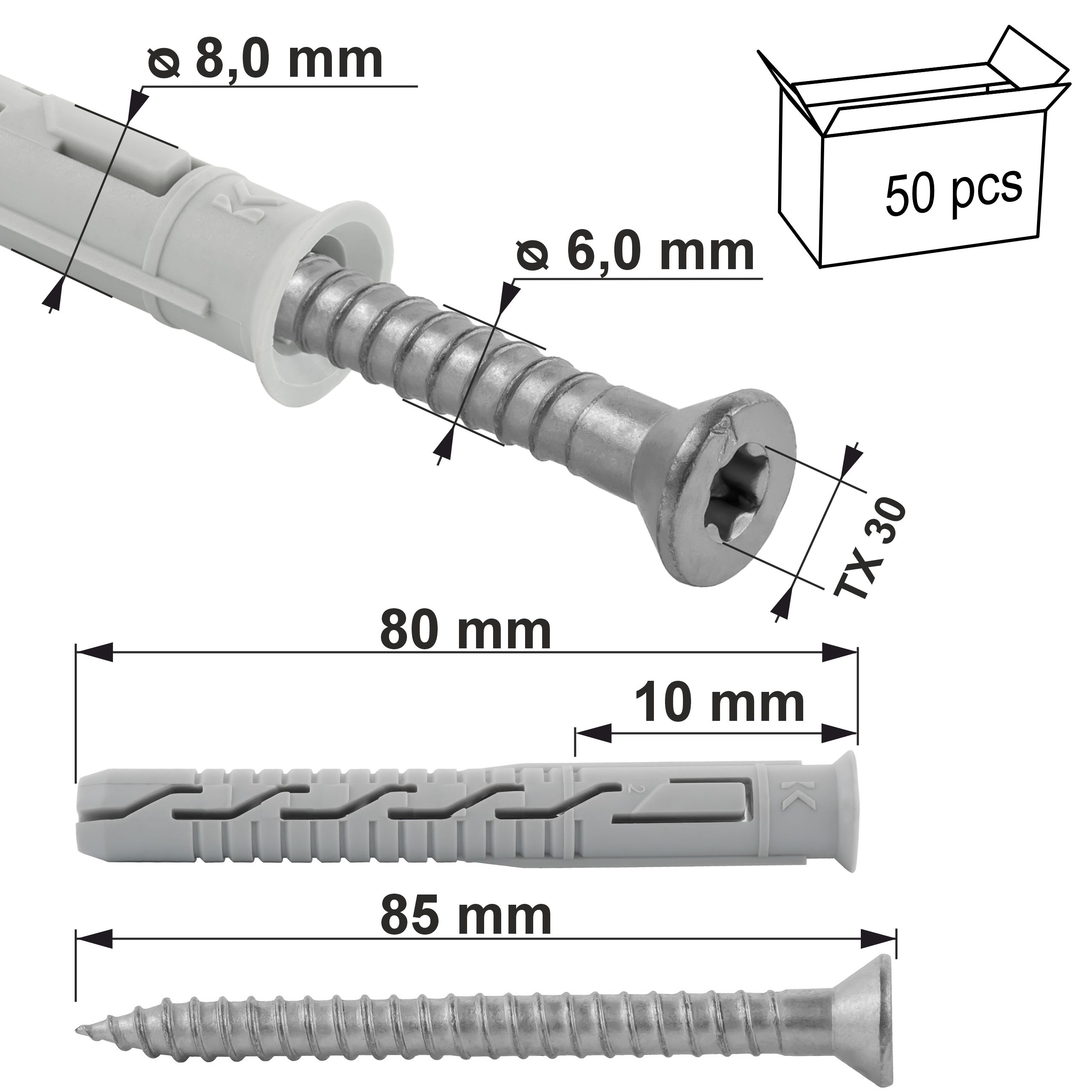Kołki rozporowe ramowe 8x80 mm 50 szt. łeb stożkowy TORX Klimas KPS-FAST