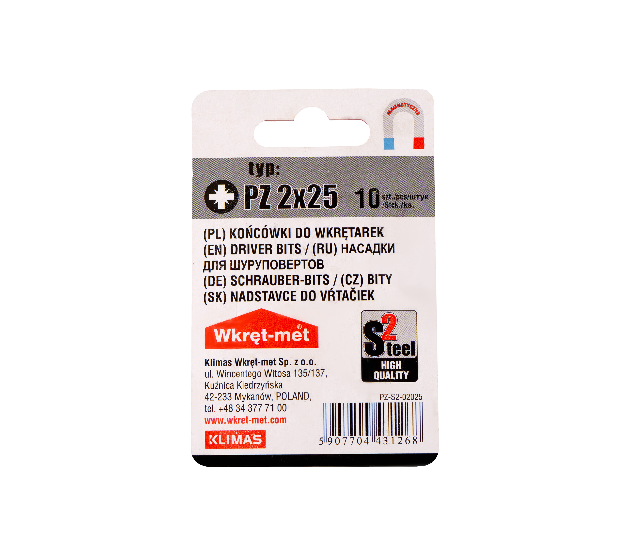 Bity do wkretarki PZ2 25mm 10 szt. magnetyczne Klimas