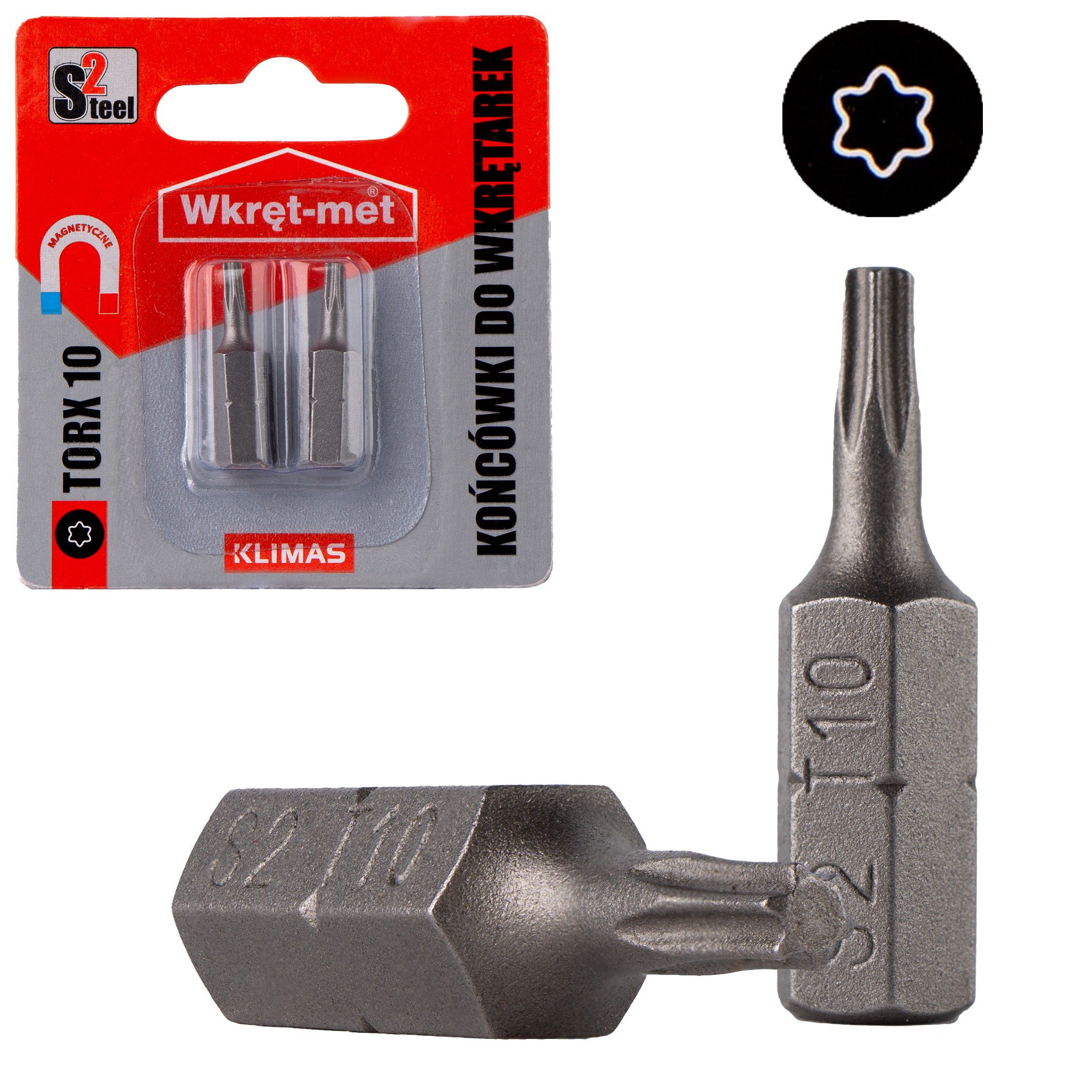 Bity do wkrętarki TORX 10 25mm 2 szt. TX10 magnetyczne Klimas
