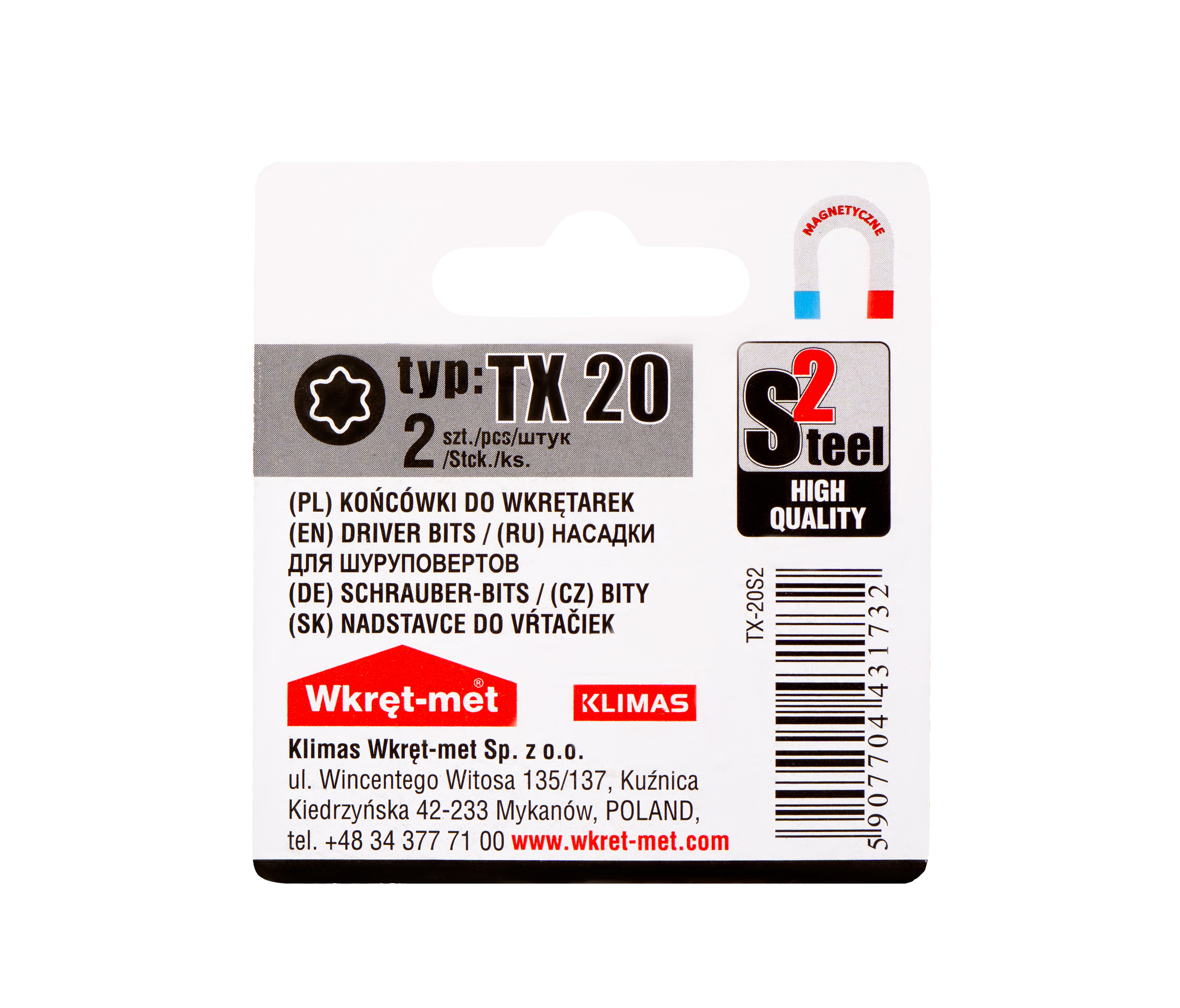 Opinie o Bity do wkrętarki TORX 20 25mm 2 szt. TX20 magnetyczne Klimas