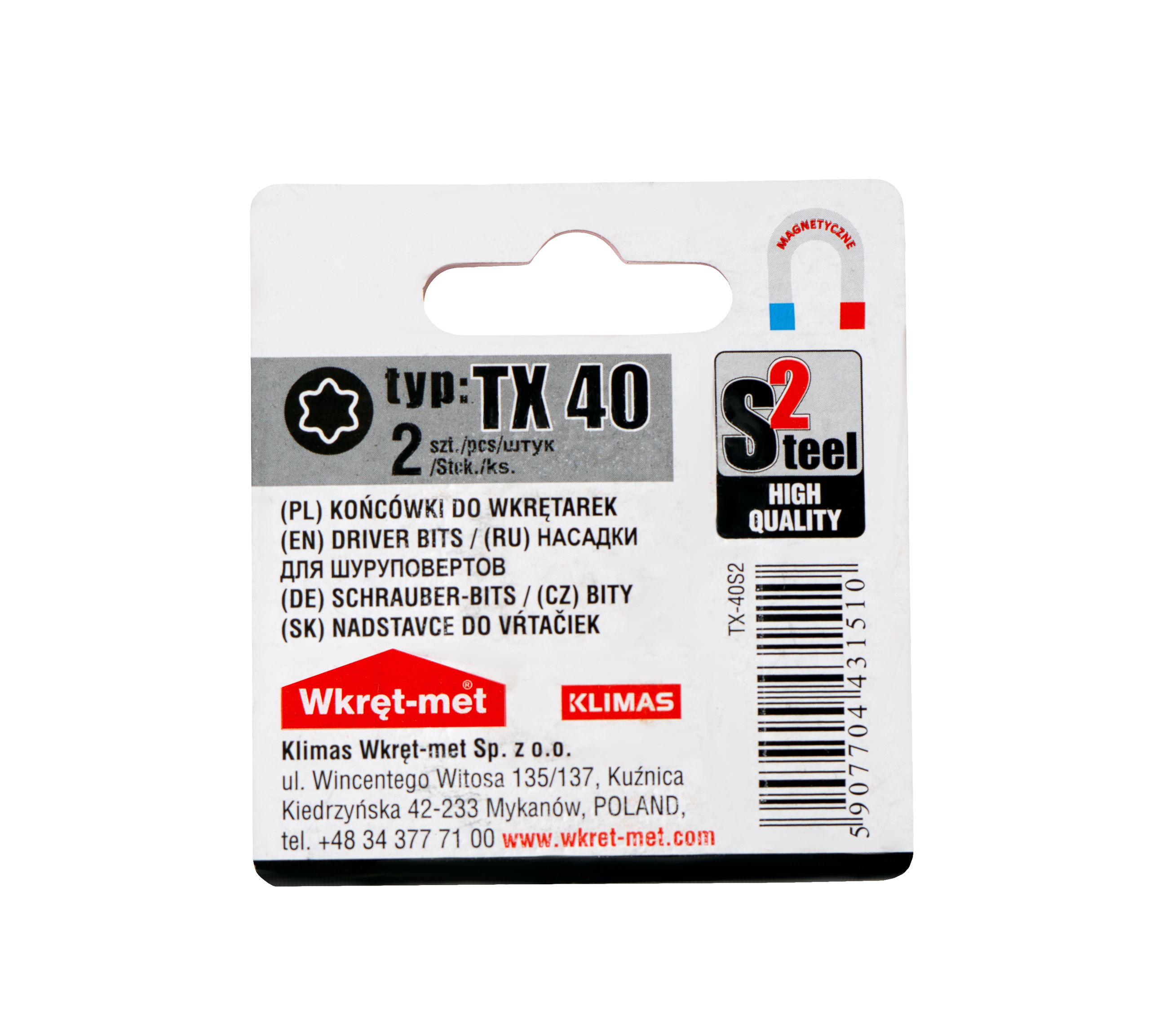 Opinie o Bity do wkrętarki TORX 40 25mm 2 szt. TX40 magnetyczne Klimas