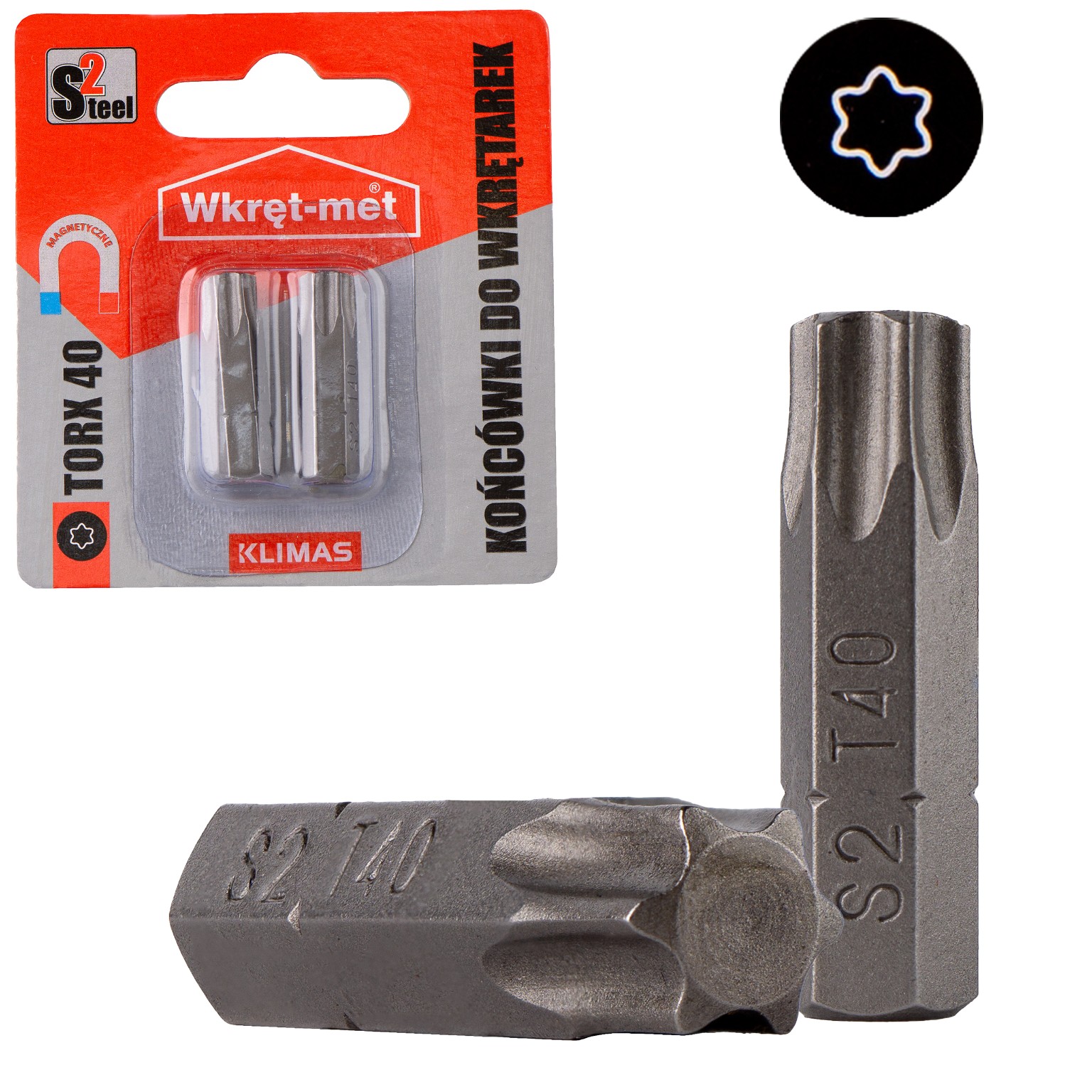 Bity do wkrętarki TORX 40 25mm 2 szt. TX40 magnetyczne Klimas
