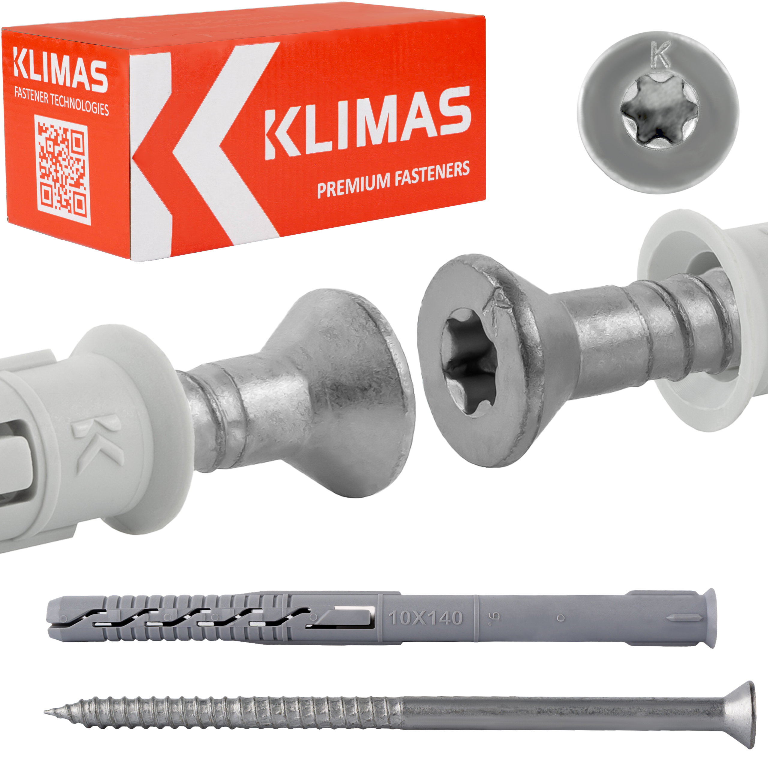 Kołki rozporowe ramowe 10x140 mm 25 szt. łeb stożkowy TORX Klimas KPS-FAST