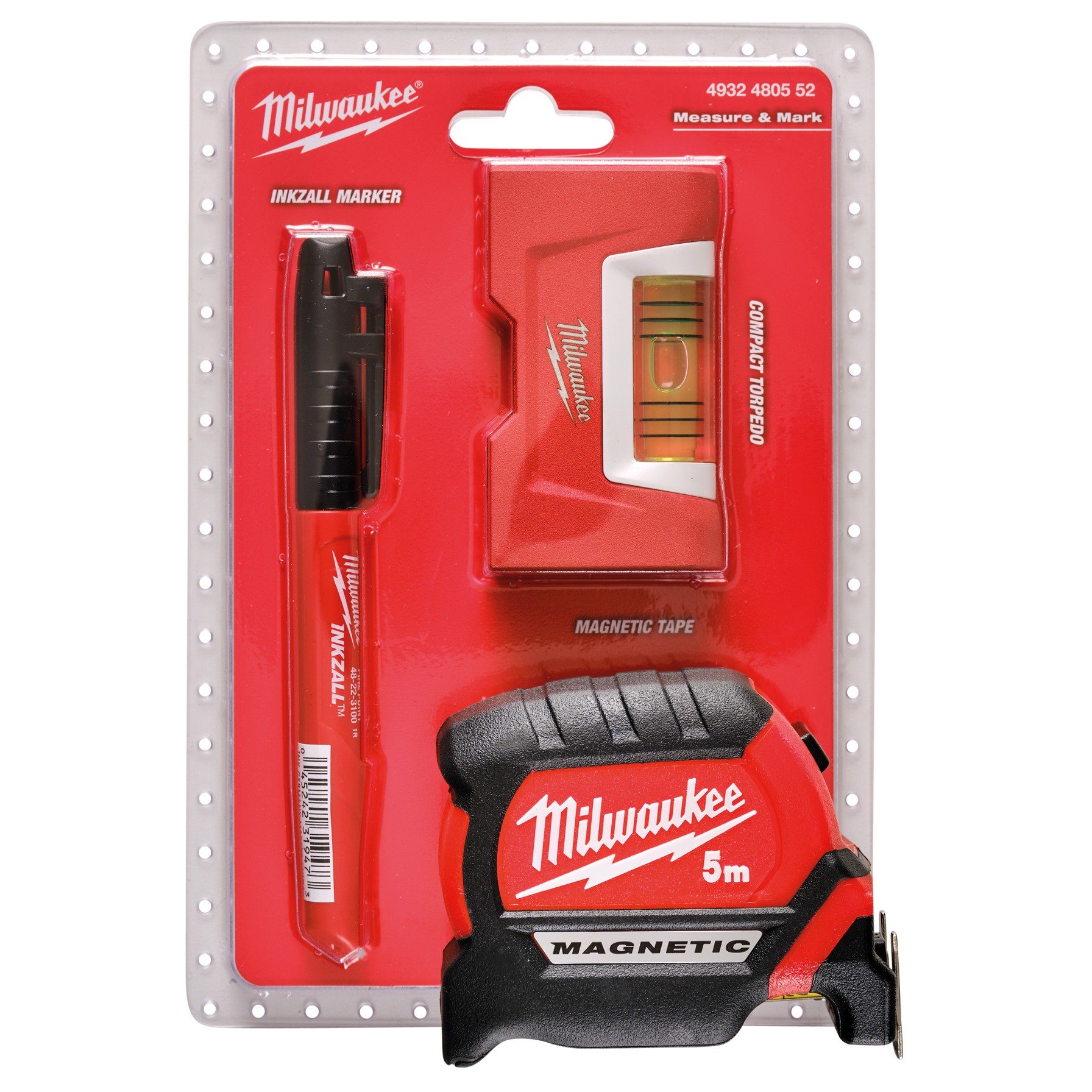 Zestaw Milwaukee - poziomica 76mm, miara zwijana magnetyczna 5m, marker